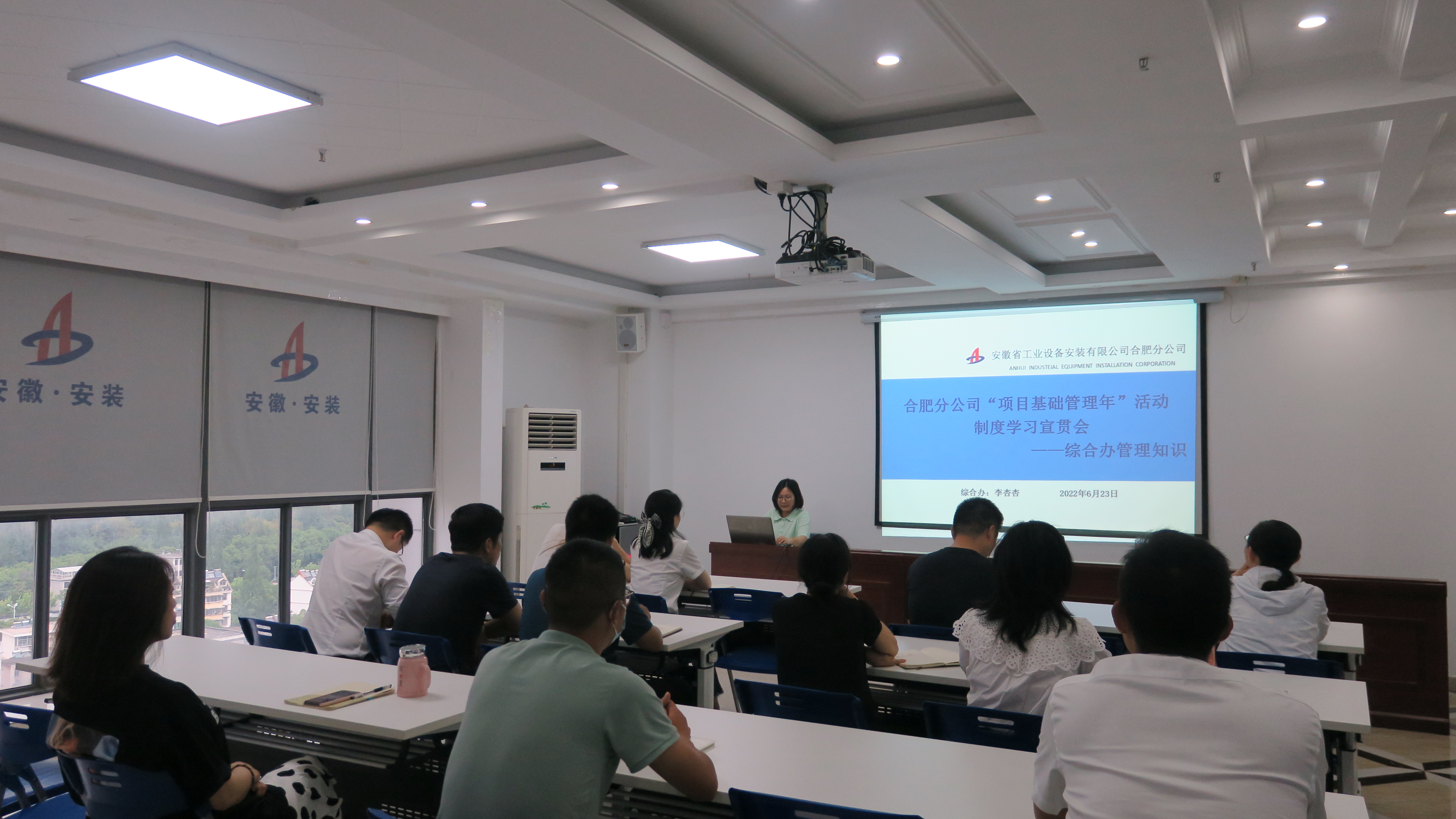 根據(ju)合(he)肥分(fen)公(gong)司“項(xiang)目(mu)管(guan)理年”活(huo)動學(xue)習培訓計劃安排,6月23日(ri)下午,分(fen)公(gong)司組織開展(zhan)了第(di)三(san)期“項(xiang)目(mu)管(guan)理年”活(huo)動制(zhi)度(du)學(xue)習會,由分(fen)公(gong)司綜合(he)辦(ban)公(gong)室李杏杏宣貫公(gong)司辦(ban)公(gong)室、人(ren)力資(zi)源相關(guan)制(zhi)度(du)。分(fen)公(gong)司領導班子成員及機關(guan)員工參會,外地項(xiang)目(mu)以視頻形式參會。