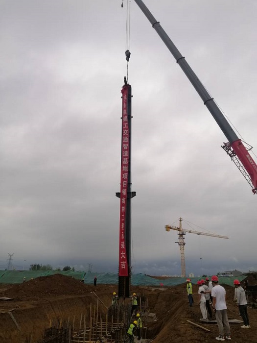 2022年(nian)7月26日上午8:18分(fen),在項目(mu)建設單位、監(jian)理單位、總(zong)包單位等領導的(de)(de)共同見(jian)(jian)證下(xia),安(an)徽建工(gong)交通智(zhi)造基地項目(mu)鋼(gang)結(jie)(jie)構工(gong)程迎來了隆重(zhong)的(de)(de)鋼(gang)結(jie)(jie)構首吊儀式(shi)。只(zhi)見(jian)(jian)首根長約21.2米、重(zhong)約11.6噸的(de)(de)鋼(gang)柱緩緩升起、穩(wen)穩(wen)落(luo)地,精準定位在安(an)裝位置上,這標志著(zhu)該項目(mu)正式(shi)進入(ru)鋼(gang)結(jie)(jie)構主體安(an)裝階段。