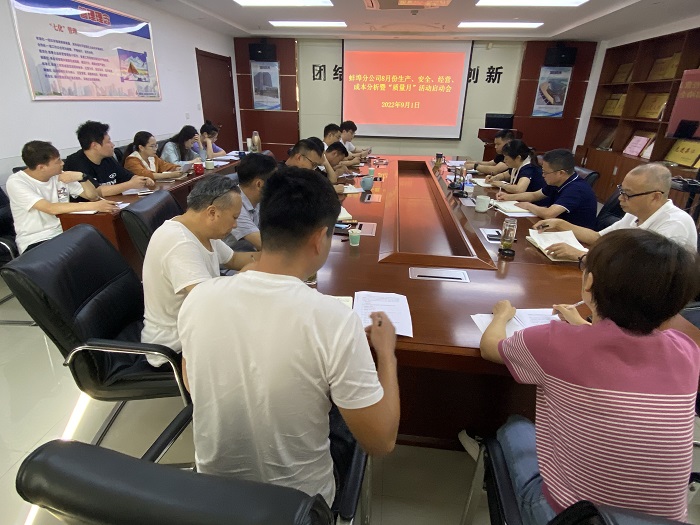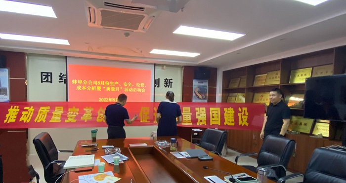 9月1日下午,蚌埠分公司召開8月份生(sheng)產、安全、經(jing)營、成本(ben)分析暨“質量(liang)月”活動啟動會,分公司領導班子成員、部門負責(ze)人及(ji)各項目經(jing)理等參會。