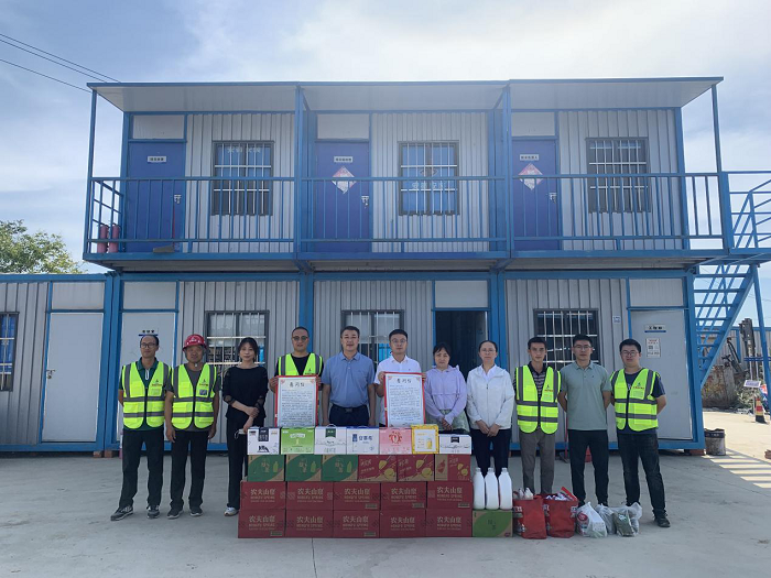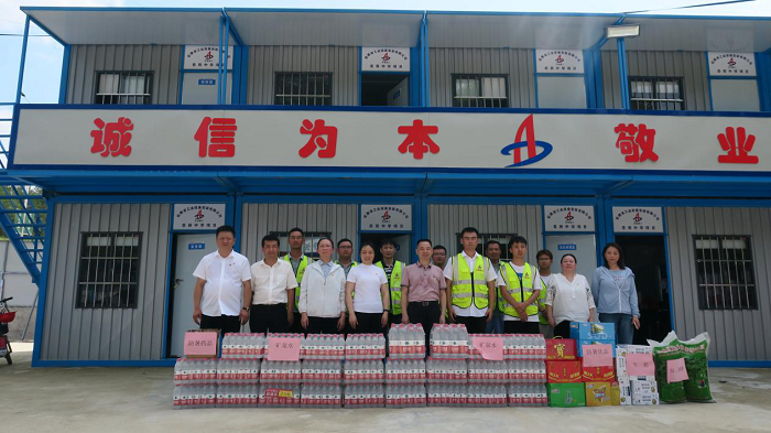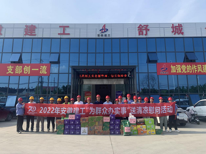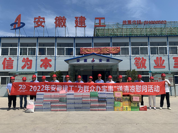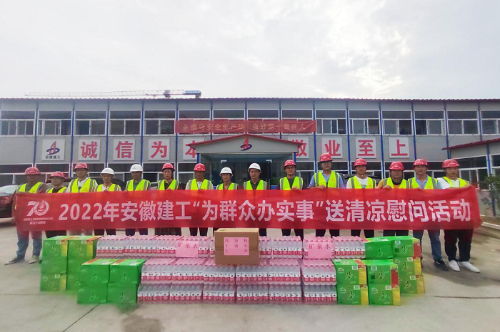 公(gong)司工會先后來到岳西中學(xue)建(jian)設項(xiang)(xiang)目(mu)(一期)安裝工程(cheng)(cheng)項(xiang)(xiang)目(mu)、中石化(hua)安慶分公(gong)司煉油轉(zhuan)化(hua)工200噸(dun)/小(xiao)時污水汽提裝置項(xiang)(xiang)目(mu)、舒(shu)城第一中學(xue)遷(qian)建(jian)項(xiang)(xiang)目(mu)、四水廠(chang)DN1800、DN1400供水管道(dao)遷(qian)建(jian)工程(cheng)(cheng)管網項(xiang)(xiang)目(mu)、花園大道(dao)(徽州大道(dao)-包河大道(dao))道(dao)路工程(cheng)(cheng)項(xiang)(xiang)目(mu)、定遠壹石通(tong)化(hua)學(xue)科技廠(chang)房(fang)項(xiang)(xiang)目(mu)、凱盛科技超(chao)薄柔性玻(bo)璃(li)(UTG)二期5#、6#車(che)間及配套設施工程(cheng)(cheng)項(xiang)(xiang)目(mu),給廣大一線職(zhi)工送去白(bai)糖、綠豆、礦(kuang)泉水、飲料、藥(yao)品等(deng)防暑降(jiang)溫物品,將工會組織(zhi)的關(guan)心關(guan)愛傳遞給項(xiang)(xiang)目(mu)職(zhi)工。