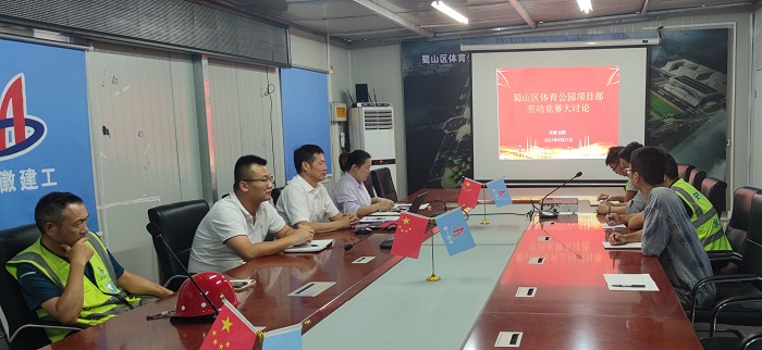 9月22日下午,市(shi)政分(fen)公司蜀(shu)山區體育公園安裝工(gong)程項目部在現場會(hui)(hui)議(yi)室組(zu)織開(kai)(kai)展了勞(lao)動(dong)(dong)競賽(sai)大討論(lun),并舉行勞(lao)動(dong)(dong)競賽(sai)動(dong)(dong)員(yuan)會(hui)(hui),正式(shi)拉開(kai)(kai)項目勞(lao)動(dong)(dong)競賽(sai)序(xu)幕。分(fen)公司黨支部書記胡(hu)迎東出席會(hui)(hui)議(yi),分(fen)公司工(gong)會(hui)(hui)副主(zhu)席張曼主(zhu)持會(hui)(hui)議(yi),項目部全體管(guan)理人(ren)員(yuan)及施(shi)工(gong)班組(zu)參會(hui)(hui)。