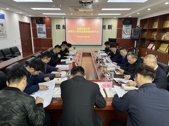 10月27日上(shang)午,蚌埠分(fen)公司黨(dang)支(zhi)部召開(kai)換(huan)屆選舉大會,全(quan)體黨(dang)員參會,會議由(you)黨(dang)支(zhi)部書記(ji)王偉主持。