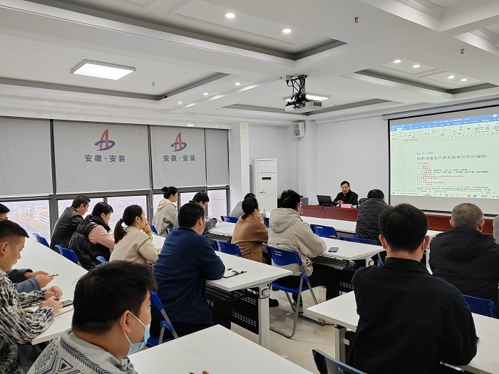 為(wei)進一步提升公(gong)司員工對特種設(she)(she)備(bei)許可(ke)(ke)的(de)理解,切實做(zuo)好壓力管道(GC1)許可(ke)(ke)換證迎審材料準備(bei)工作。11月22日上午(wu),安(an)徽(hui)(hui)安(an)裝公(gong)司在15樓職(zhi)工之家(jia)舉辦“特種設(she)(she)備(bei)生(sheng)產(chan)和充裝單(dan)位許可(ke)(ke)規則(ze)TSG07-2019”專題(ti)學習(xi)培(pei)訓(xun)。培(pei)訓(xun)邀請了安(an)徽(hui)(hui)省特種設(she)(she)備(bei)檢測院原總工、正高級工程師許久勝授課。公(gong)司機(ji)關、所屬各單(dan)位相關部門人員約50余人參加培(pei)訓(xun)。培(pei)訓(xun)以現場加視頻的(de)形式召開。