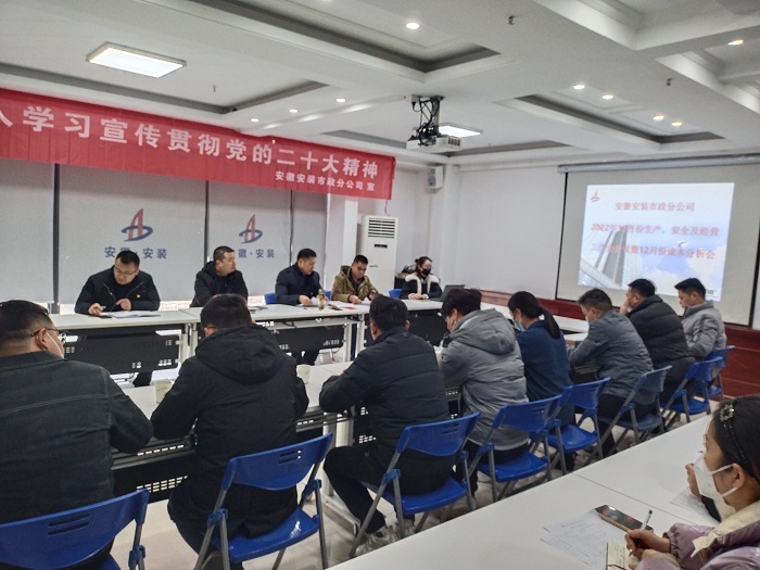 12月13日上午(wu),市政分(fen)公(gong)(gong)司(si)在十五樓(lou)職(zhi)工(gong)之家(jia)召開分(fen)公(gong)(gong)司(si)12月份(fen)生產(chan)、安(an)全、經營工(gong)作暨成本(ben)分(fen)析(xi)會。分(fen)公(gong)(gong)司(si)領導(dao)班子成員、機關(guan)部(bu)(bu)門及項(xiang)目(mu)部(bu)(bu)全體員工(gong)參(can)會,會議由分(fen)公(gong)(gong)司(si)生產(chan)副經理(li)張漢軍主(zhu)持。