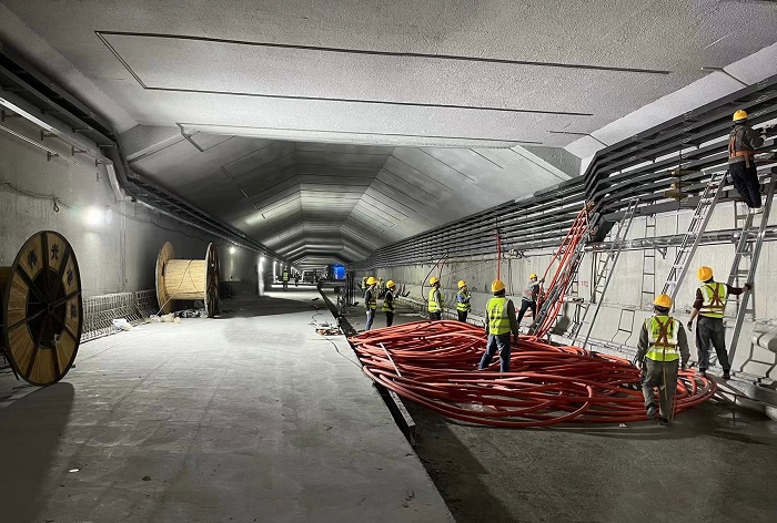 目(mu)前(qian),項目(mu)下(xia)穿隧道(dao)東(dong)、西側(ce)1#2#配電(dian)房一次性送電(dian)成功(gong),能夠提供隧道(dao)現場施(shi)工用電(dian),東(dong)側(ce)雨水(shui)泵房和中間(jian)廢水(shui)泵房已完成施(shi)工任務,隧道(dao)里的(de)橋(qiao)架(jia)安裝(zhuang)、電(dian)纜(lan)敷設、消防水(shui)管安裝(zhuang)、照明燈具安裝(zhuang)及各附(fu)屬(shu)設施(shi)安裝(zhuang)建設也正在加速進行當中。