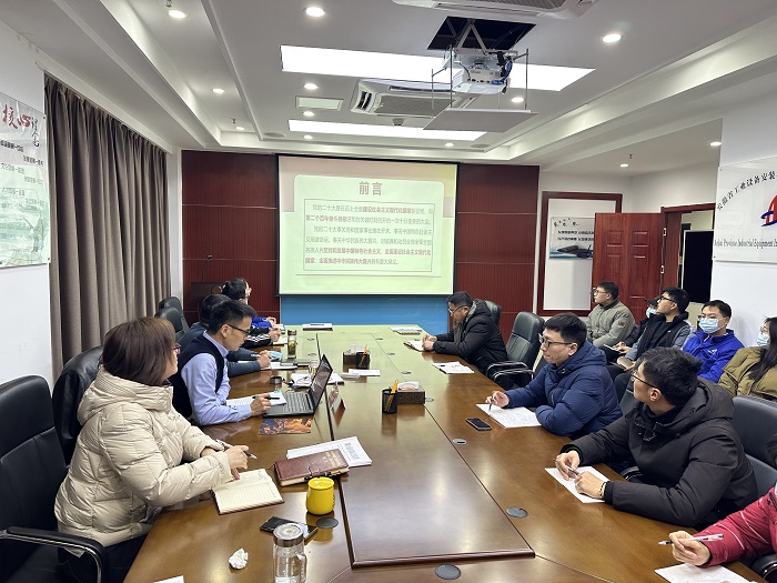 1月11日下午,安(an)徽安(an)裝公(gong)司(si)(si)黨委副書記(ji)、副總經理周正平赴安(an)慶(qing)分公(gong)司(si)(si)開展黨的(de)二十大精(jing)神宣(xuan)講(jiang),分公(gong)司(si)(si)全體(ti)員工參加宣(xuan)講(jiang)會。