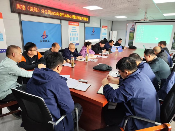 一年(nian)春(chun)作首,萬事行為先。1月31日,房(fang)建(裝飾(shi))分公司在阜(fu)南污水處(chu)理廠(chang)項(xiang)目部召開1月份生產(chan)經營(ying)會(hui)暨春(chun)節后“收心(xin)會(hui)”,分公司全體員工(gong)參會(hui)。
