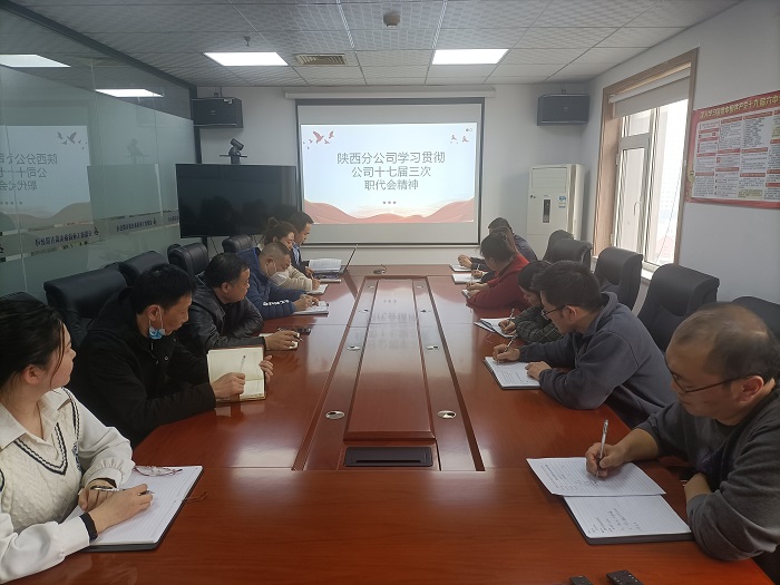為深(shen)入(ru)學習公(gong)(gong)(gong)司(si)(si)十七屆(jie)三(san)次職代會(hui)精神,全(quan)面貫徹落實(shi)會(hui)議(yi)部(bu)署(shu)要求(qiu)。2月7日,陜西(xi)分(fen)公(gong)(gong)(gong)司(si)(si)組織召開專題學習會(hui),會(hui)議(yi)由分(fen)公(gong)(gong)(gong)司(si)(si)經(jing)理、黨支部(bu)書(shu)記張(zhang)寶深(shen)主持,分(fen)公(gong)(gong)(gong)司(si)(si)機關全(quan)體員(yuan)工(gong)參會(hui)。