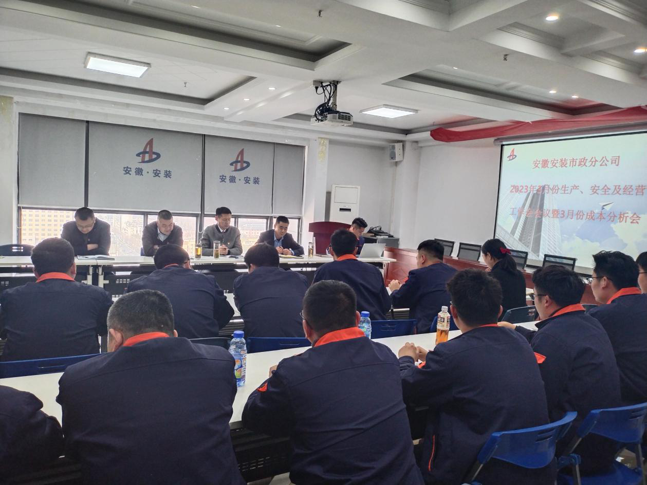 3月(yue)4日(ri)下午(wu),市政分公(gong)司在公(gong)司十(shi)五樓職工(gong)之家組織召開分公(gong)司2023年3月(yue)份生產、安全及(ji)經營工(gong)作會(hui)議(yi)暨月(yue)份成(cheng)本分析會(hui),分公(gong)司領導班(ban)子(zi)成(cheng)員(yuan)、部門及(ji)項目部全體人員(yuan)參會(hui),會(hui)議(yi)由分公(gong)司副經理張漢軍主持。