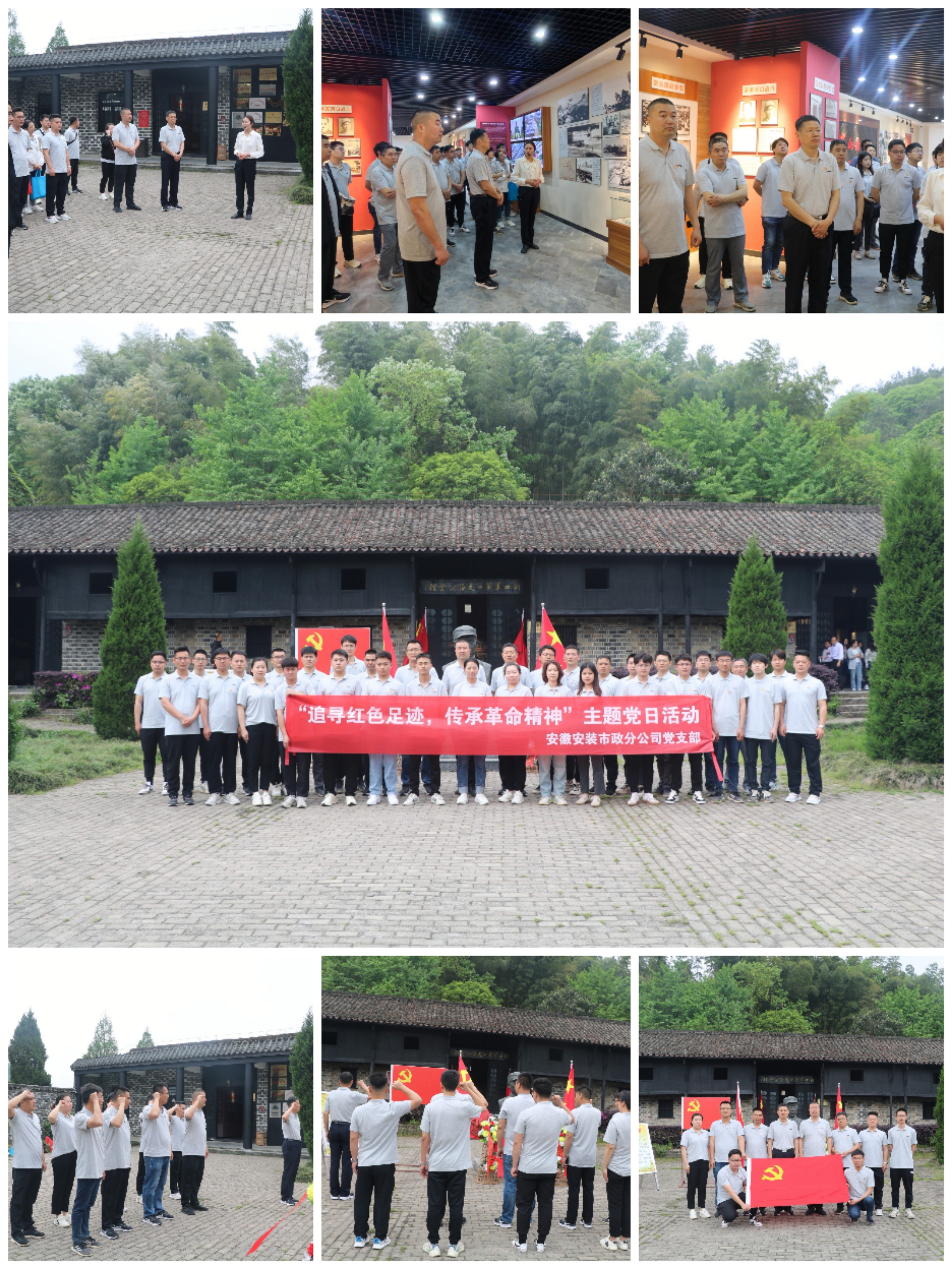 4月(yue)21日上午,市政(zheng)分公司(si)黨(dang)支(zhi)部組織支(zhi)部全體黨(dang)員(yuan)、入黨(dang)積極分子和干(gan)部群眾前往安徽舒城新四(si)軍第四(si)支(zhi)隊(dui)紀(ji)念(nian)館,開展“追(zhui)尋紅色足跡(ji),傳承(cheng)革(ge)命(ming)精神(shen)”主題黨(dang)日活動。
