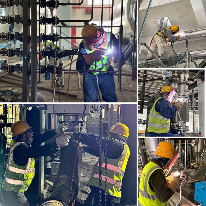 面(mian)對建設(she)單位準備在5月下旬進行試生(sheng)產的目標任務,車間內新增管線是否能夠按(an)時(shi)完(wan)成(cheng)就成(cheng)為確(que)保試生(sheng)產順利(li)進行的最大難題。為此,項目部(bu)精(jing)心組織、加強協調,認真(zhen)部署,通過多次召開碰頭會最終達成最優施工(gong)進度方案,做到明確每日進度內(nei)容,合理(li)安排(pai)施工(gong)人(ren)員(yuan),積(ji)極(ji)做好施工(gong)現場各項安全防護工(gong)作,在保證(zheng)原有工(gong)程量的基礎上,對新(xin)增管線進行科學分解,新(xin)增突(tu)擊作業隊,采(cai)用“5+2”“白加黑”,多個小組多工作(zuo)面(mian)同時(shi)施(shi)工的方法(fa),開足馬力快速推進,從而大(da)大(da)提高了施(shi)工速度,提升了工作(zuo)效率。