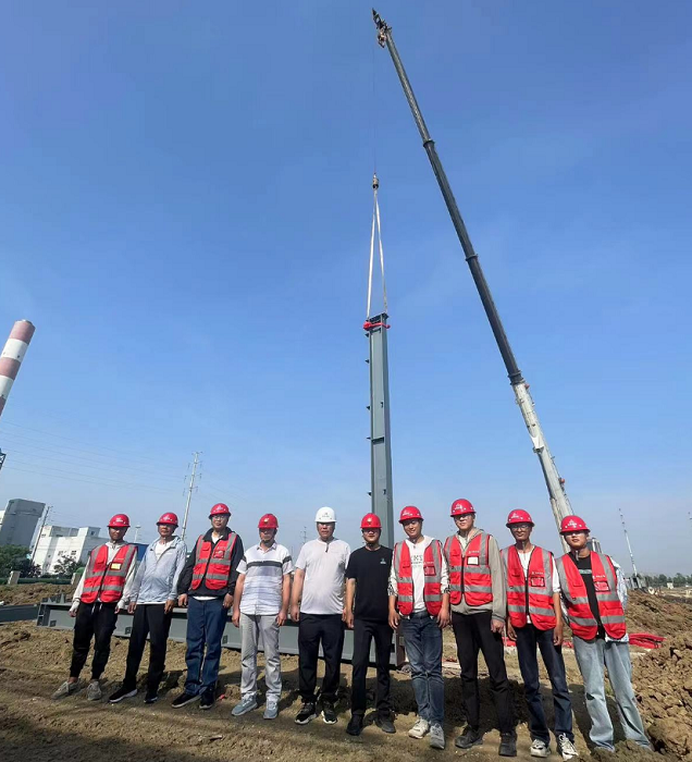 丙(bing)類車(che)間鋼(gang)架順利(li)(li)開吊(diao)(diao)是該工(gong)程(cheng)(cheng)一(yi)個重(zhong)要里程(cheng)(cheng)碑(bei)節點。為確(que)保(bao)進展順利(li)(li),吊(diao)(diao)裝(zhuang)前,項目(mu)部組織專(zhuan)業人員(yuan)對吊(diao)(diao)裝(zhuang)方案(an)、安(an)全措(cuo)施(shi)、質量標準、起吊(diao)(diao)機械等進行詳(xiang)細(xi)審查,開展現(xian)(xian)場(chang)土建交付安(an)裝(zhuang)前的條件確(que)認(ren),項目(mu)經(jing)理(li)現(xian)(xian)場(chang)指揮,安(an)全管理(li)人員(yuan)全程(cheng)(cheng)監(jian)控,保(bao)證鋼(gang)結構吊(diao)(diao)裝(zhuang)能夠高(gao)標準開吊(diao)(diao),為后續安(an)裝(zhuang)工(gong)作(zuo)奠定堅實基礎。