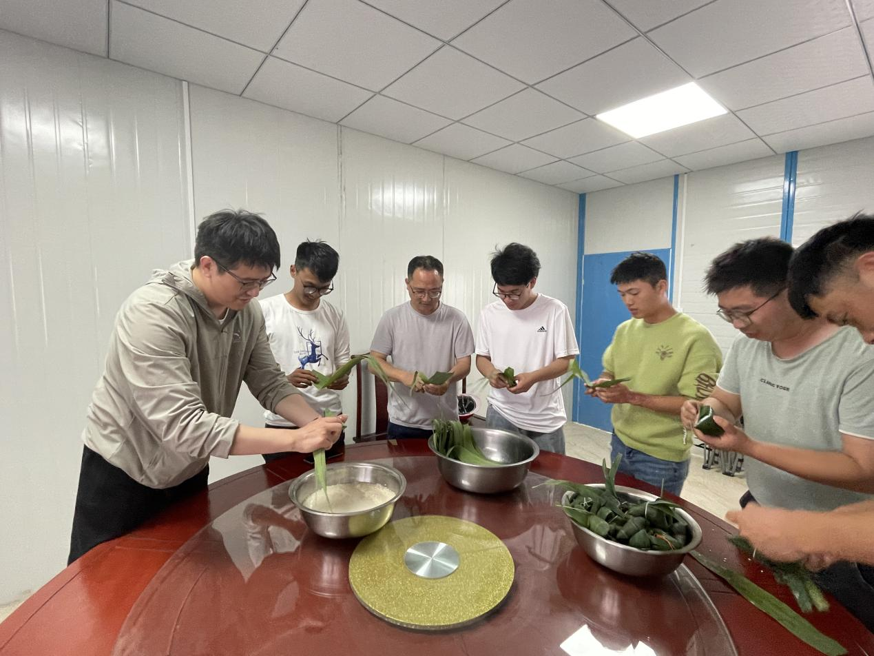 6月4日(ri),一(yi)(yi)場(chang)傾(qing)盆(pen)大雨給(gei)持續高溫的蚌(bang)埠沫(mo)河口化工園區(qu)帶來絲絲涼(liang)意,蚌(bang)埠分公司輝隆項目部場(chang)地濕滑,各機械設備(bei)無法安(an)全施工,但是項目食(shi)堂里(li)卻充滿著陣陣歡(huan)聲笑語。項目部管理人員同(tong)監(jian)理、業主歡(huan)聚在(zai)(zai)一(yi)(yi)起,一(yi)(yi)場(chang)特殊(shu)的“粽子總動員”活動在(zai)(zai)工地上演,為一(yi)(yi)派繁忙的工地平(ping)添了濃(nong)厚的祥和氣(qi)氛。