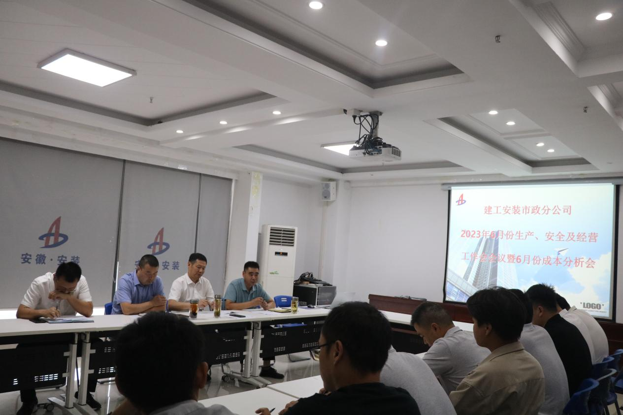 6月(yue)13日上午,市政分公司在(zai)公司十五樓職工之家組織召開分公司2023年6月(yue)份生產、安全(quan)及(ji)經營工作(zuo)會(hui)(hui)議(yi)暨6月(yue)份成本分析(xi)會(hui)(hui),分公司領(ling)導班子成員(yuan)、部門(men)及(ji)項(xiang)目部全(quan)體人員(yuan)參會(hui)(hui),會(hui)(hui)議(yi)由分公司副經理張漢軍主持。