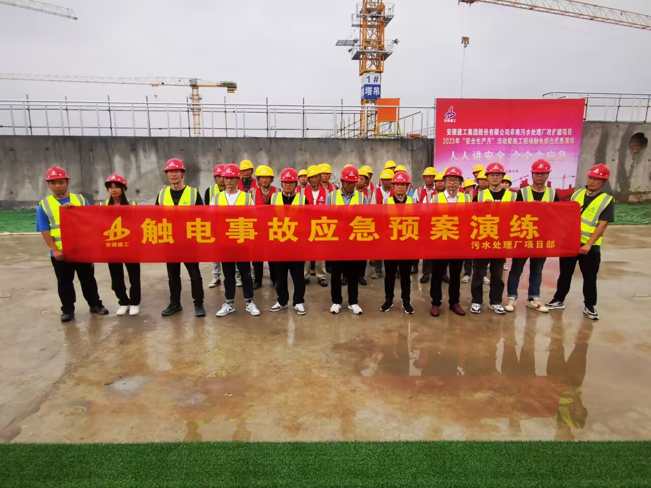 為(wei)(wei)提高員工應(ying)(ying)對突發事(shi)故的(de)應(ying)(ying)急能力(li),檢驗應(ying)(ying)急預(yu)案(an)的(de)可行性,切實(shi)落實(shi)“安全第一(yi)、預(yu)防為(wei)(wei)主、綜(zong)合治理”的(de)安全生產方針。6月18日上午,房(fang)建(jian)(裝(zhuang)飾)分(fen)(fen)公司聯合電(dian)梯分(fen)(fen)公司在(zai)阜南污(wu)水處理廠項目部(bu)組織開展觸電(dian)事(shi)故應(ying)(ying)急演練(lian)。房(fang)建(jian)分(fen)(fen)公司和電(dian)梯分(fen)(fen)公司領(ling)導(dao)班子成員及分(fen)(fen)公司職(zhi)能部(bu)門、項目全體(ti)成員參加本次演練(lian)活動。