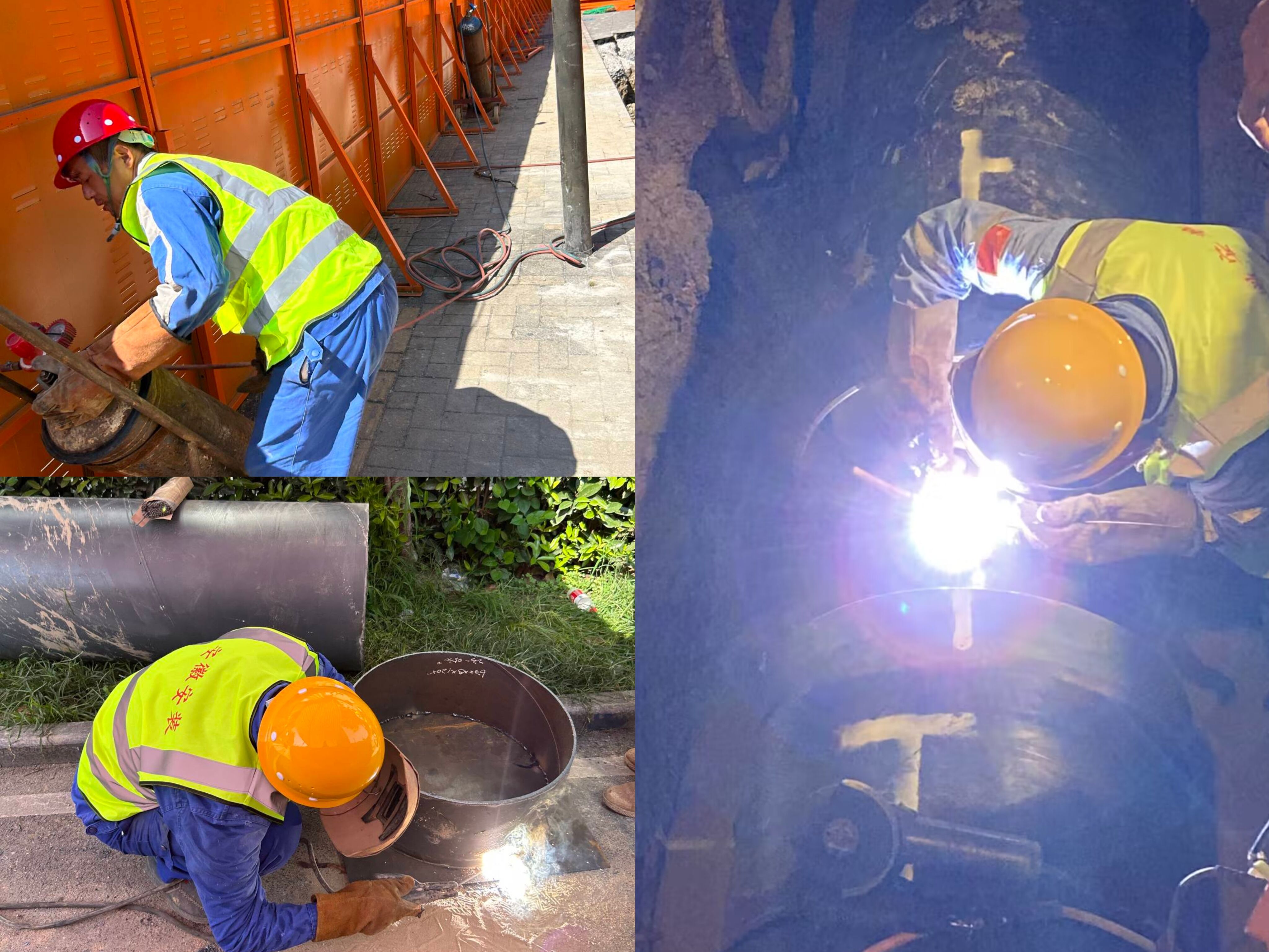 圖為:蕪湖路蒸汽管(guan)網改造工程乙炔瓶搬運、套管(guan)焊(han)接(jie)及(ji)直(zhi)埋蒸汽保溫管(guan)道焊(han)接(jie)施(shi)工