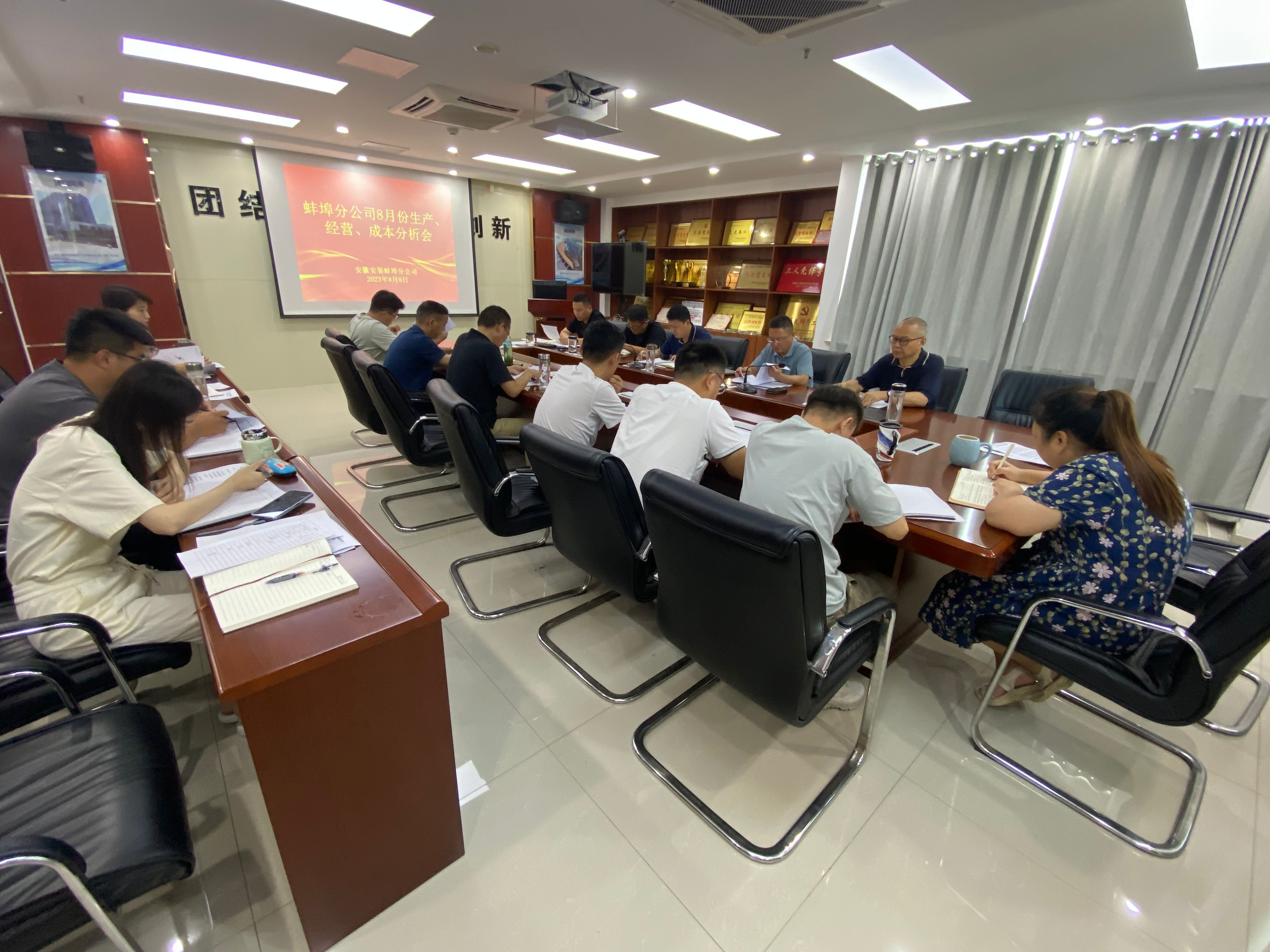 8月8日上(shang)午,蚌埠分(fen)(fen)公(gong)司組織召開8月份(fen)生(sheng)產、經營(ying)、成本分(fen)(fen)析(xi)會,分(fen)(fen)公(gong)司領導(dao)班子、所(suo)屬(shu)各項目負責人、機關各部(bu)門負責人及工程管理部(bu)全體(ti)員(yuan)工參加會議,會議由分(fen)(fen)公(gong)司副經理郭洋(yang)主持。