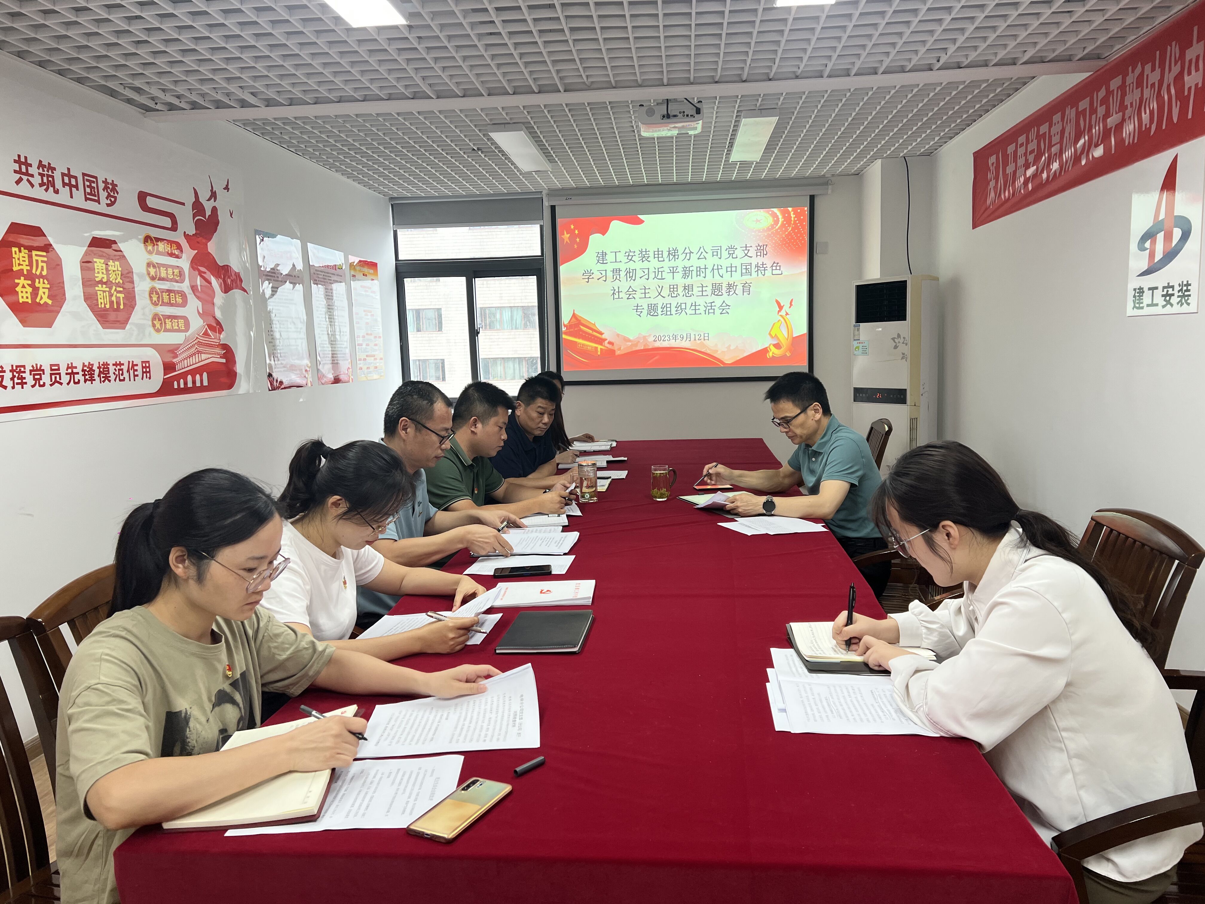 9月12日下午,建工安(an)裝電(dian)梯分(fen)公(gong)司(si)(si)黨(dang)支部召開學(xue)習(xi)貫徹(che)習(xi)近平新時代中國特(te)色社會(hui)(hui)主義思(si)想主題教育專題組織生活會(hui)(hui),公(gong)司(si)(si)黨(dang)委(wei)副書記、副總經理(li)周正平到會(hui)(hui)指導。分(fen)公(gong)司(si)(si)班(ban)子成員、全體(ti)黨(dang)員參會(hui)(hui)。會(hui)(hui)議由分(fen)公(gong)司(si)(si)黨(dang)支部副書記、副經理(li)李文山主持(chi)。