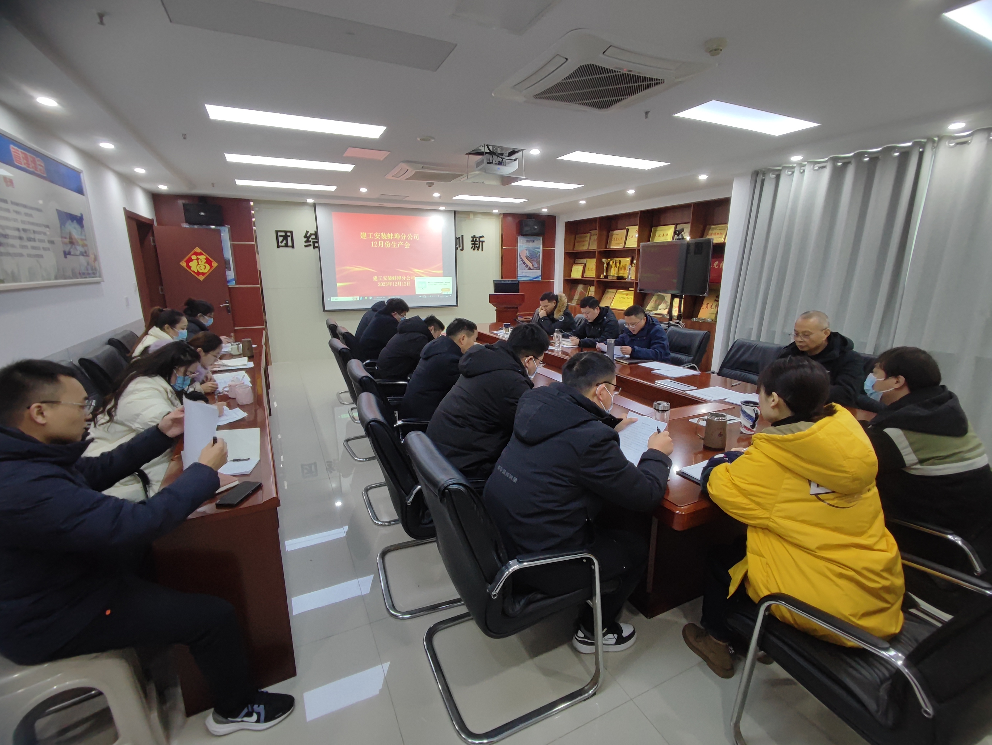 12月12日上午,建工安裝蚌埠分公司(si)在(zai)機關會(hui)議室召開(kai)12月份生產(chan)安全(quan)經營會(hui),分公司(si)領導班子成員、各項(xiang)目(mu)主(zhu)要負責人(ren)、機關各部門負責人(ren)及工程部全(quan)體員工參加會(hui)議,會(hui)議由分公司(si)副經理(li)郭(guo)洋主(zhu)持。