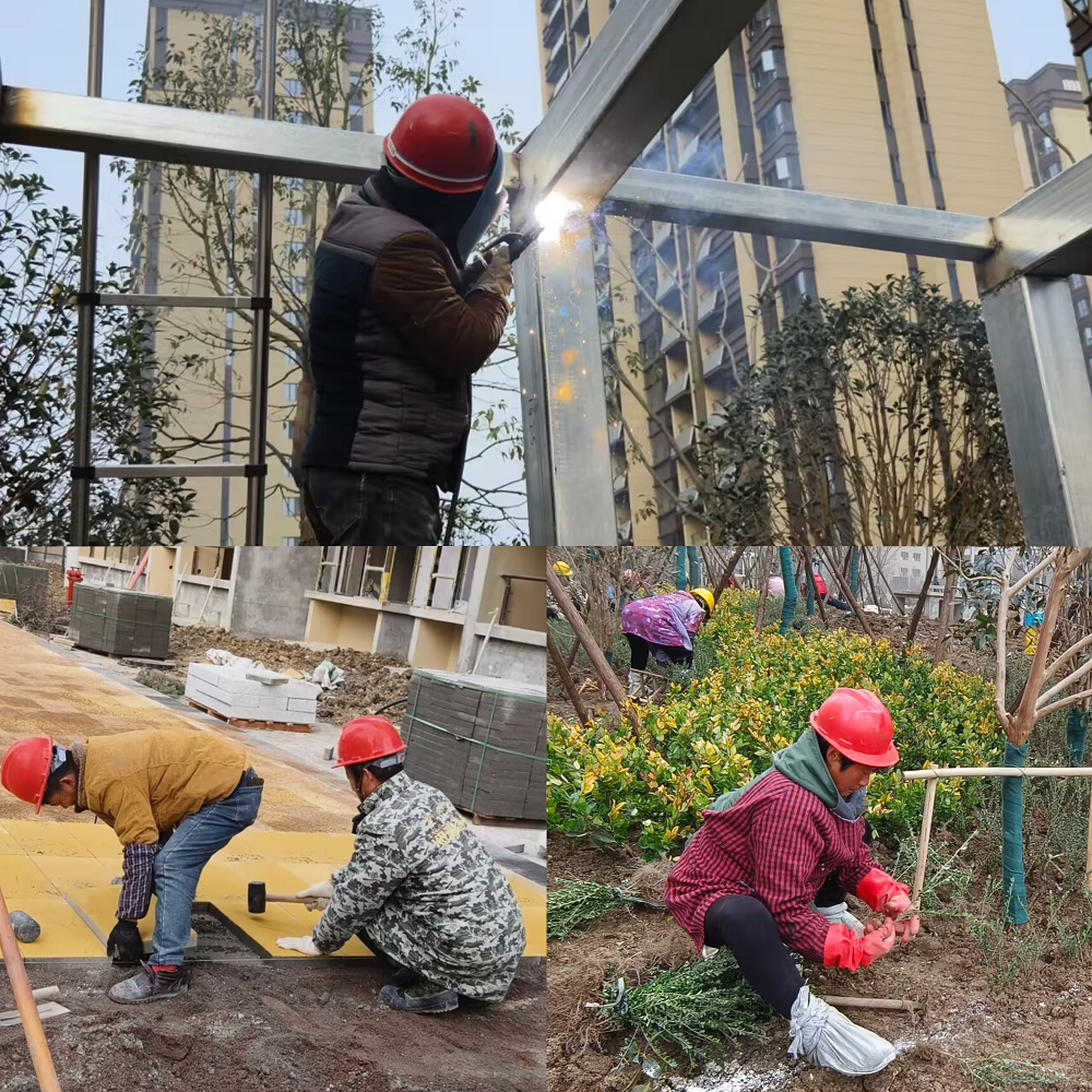 圖(tu)為(wei):舒城縣(xian)青墩小區項目坡道鋼結構雨棚焊接、人行道鋪(pu)裝及綠化種植(zhi)施工