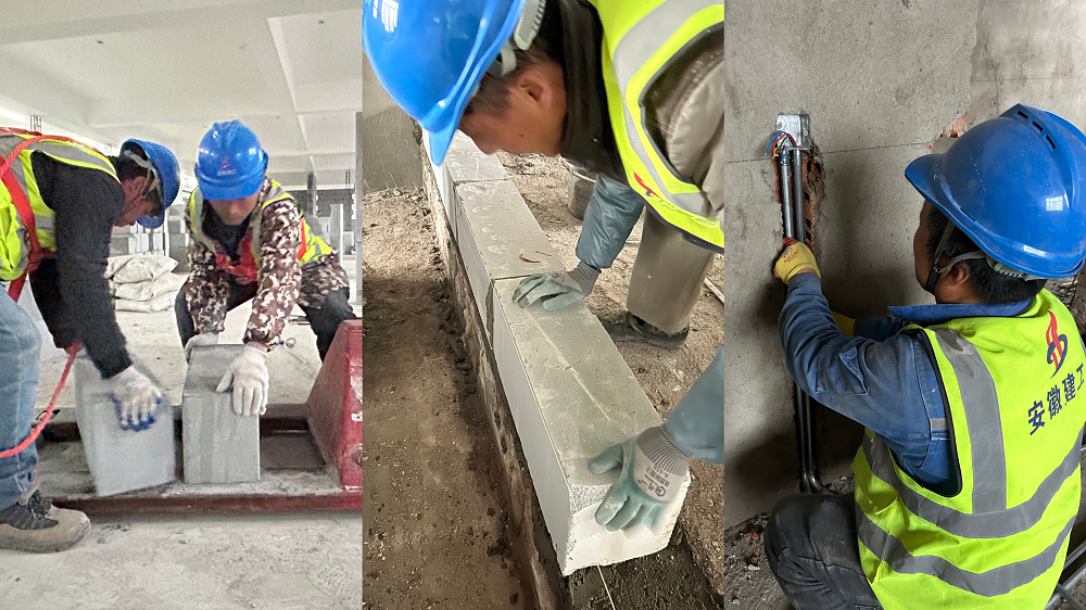 圖為(wei):安徽理工大學(xue)(合肥高等研究院)維修(xiu)改造項目(二期)室內砌筑材料搬運、新增隔墻砌筑及水(shui)電管線預埋施工