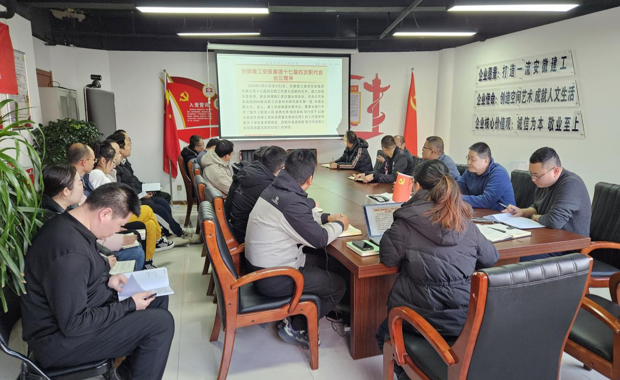 會(hui)議傳達(da)學習了(le)建工(gong)(gong)(gong)控股黨委書記、董事(shi)長(chang)楊善斌作(zuo)的(de)(de)(de)(de)題(ti)(ti)為(wei)《改(gai)革(ge)創新擔當(dang)作(zuo)為(wei)奮(fen)力推(tui)進安(an)(an)徽建工(gong)(gong)(gong)集(ji)團轉(zhuan)型發展(zhan)(zhan)(zhan)高(gao)質(zhi)量發展(zhan)(zhan)(zhan)大發展(zhan)(zhan)(zhan)》的(de)(de)(de)(de)總(zong)結講(jiang)話(hua)精神(shen)(shen)(shen)、建工(gong)(gong)(gong)控股黨委委員、總(zong)會(hui)計師王淑(shu)德作(zuo)的(de)(de)(de)(de)集(ji)團《工(gong)(gong)(gong)作(zuo)報(bao)告》精神(shen)(shen)(shen),以及建工(gong)(gong)(gong)安(an)(an)裝(zhuang)(zhuang)黨委書記、董事(shi)長(chang)胡六中作(zuo)的(de)(de)(de)(de)題(ti)(ti)為(wei)《躬(gong)身入局挺膺負責錨定目標篤行實干以奮(fen)斗(dou)姿態(tai)開(kai)(kai)啟建工(gong)(gong)(gong)安(an)(an)裝(zhuang)(zhuang)高(gao)質(zhi)量發展(zhan)(zhan)(zhan)新征(zheng)程》的(de)(de)(de)(de)工(gong)(gong)(gong)作(zuo)報(bao)告和題(ti)(ti)為(wei)《深化改(gai)革(ge)提質(zhi)效(xiao)搶(qiang)抓機(ji)遇(yu)譜新篇奮(fen)力開(kai)(kai)啟建工(gong)(gong)(gong)安(an)(an)裝(zhuang)(zhuang)高(gao)質(zhi)量發展(zhan)(zhan)(zhan)新征(zheng)程》的(de)(de)(de)(de)講(jiang)話(hua)精神(shen)(shen)(shen)。通過宣貫學習,大家對集(ji)團、公(gong)司2023年(nian)(nian)取得的(de)(de)(de)(de)成績(ji)以及2024年(nian)(nian)工(gong)(gong)(gong)作(zuo)思路(lu)、部署(shu)安(an)(an)排和發展(zhan)(zhan)(zhan)形勢(shi)都有了(le)深刻的(de)(de)(de)(de)理(li)解和認識,進一步(bu)提振(zhen)了(le)信心,鼓舞了(le)士氣。