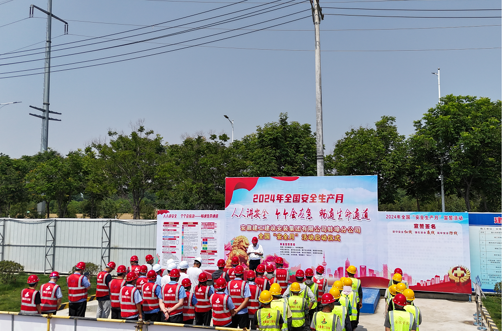 正值第23個全(quan)國“安全(quan)生產月”到來之(zhi)際,5月31日上(shang)午(wu),蚌(bang)埠分公(gong)司(si)在宿(su)州(zhou)深巖(yan)項目(mu)開展(zhan)“安全(quan)生產月”活(huo)動(dong)啟(qi)動(dong)儀式,分公(gong)司(si)領導班子、部門負責(ze)人(ren)、各(ge)項目(mu)班子及安全(quan)負責(ze)人(ren)、深巖(yan)項目(mu)業主(zhu)及監理代表、項目(mu)部全(quan)體員工50余人(ren)參(can)加本次啟(qi)動(dong)儀式。