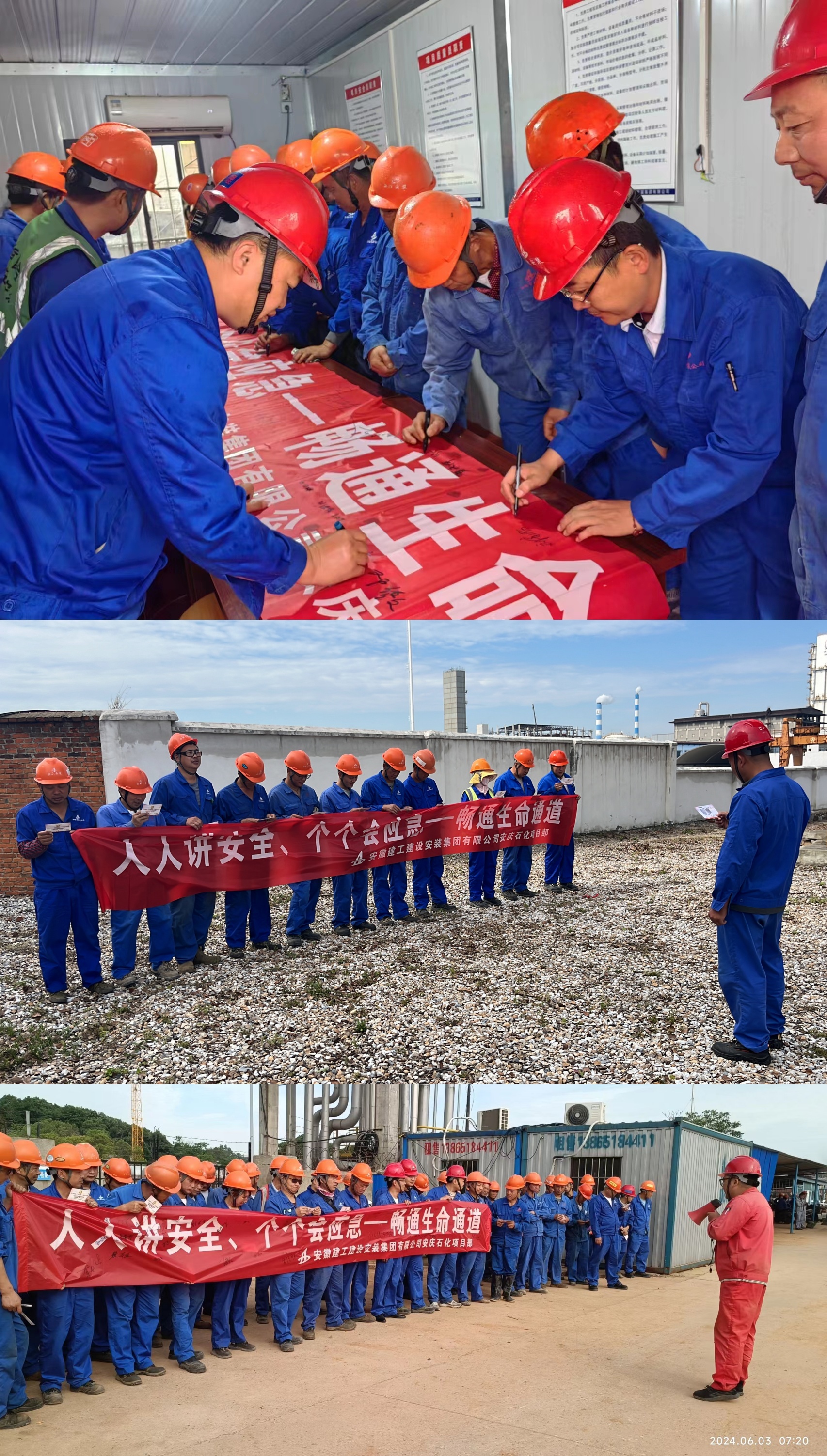 6月3日(ri),安慶分公(gong)司在石化項(xiang)(xiang)目部(bu)(bu)舉行(xing)2024年“安全生產月”啟動(dong)儀式,分公(gong)司領導班(ban)子及分公(gong)司機(ji)關、項(xiang)(xiang)目部(bu)(bu)員工參加本(ben)次啟動(dong)儀式。