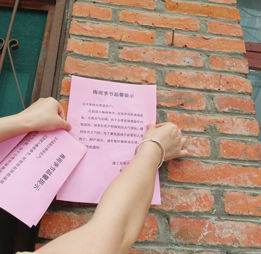近期梅雨(yu)季節來臨(lin),面對(dui)持(chi)續性地(di)強(qiang)降雨(yu)天氣,為防(fang)患于未(wei)然,確保轄區居民群眾居住安全,6月22日(ri),建工(gong)安裝合肥分公(gong)司、電梯分公(gong)司團員(yuan)青年志愿(yuan)者(zhe)們聯合包河(he)區包公(gong)街道(dao)炳輝社區對(dui)安裝公(gong)司大(da)院的危(wei)舊房(fang)屋開展了安全巡查(cha)工(gong)作。