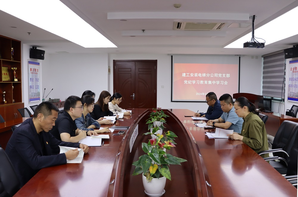 為進一步(bu)貫徹落實黨(dang)(dang)(dang)紀學習教(jiao)育工(gong)作(zuo)部署,強化黨(dang)(dang)(dang)員(yuan)干(gan)部遵規(gui)守(shou)紀意識,5月27日上午,建工(gong)安(an)裝(zhuang)電梯分公司(si)黨(dang)(dang)(dang)支(zhi)部開展了(le)黨(dang)(dang)(dang)紀學習教(jiao)育集中學習研(yan)討,分公司(si)黨(dang)(dang)(dang)支(zhi)部書記姚(yao)春靜主持會(hui)議,分公司(si)全體黨(dang)(dang)(dang)員(yuan)參會(hui)。