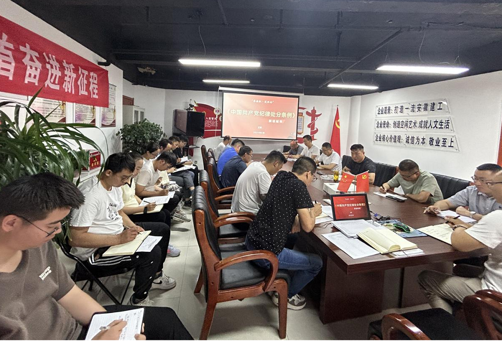 6月(yue)30日,建(jian)工安(an)裝新疆(jiang)烏(wu)蘇分公司開展上半年(nian)工作(zuo)總(zong)(zong)結會議(yi)暨(ji)黨紀(ji)學(xue)習教(jiao)育專(zhuan)題黨課(ke),公司黨委(wei)委(wei)員(yuan)、副總(zong)(zong)經理(li)王軍(jun)出席會議(yi)并講授(shou)黨課(ke)。分公司領導班子成員(yuan)、機關全(quan)體成員(yuan)及在烏(wu)蘇項目(mu)管理(li)人員(yuan)參加會議(yi)。