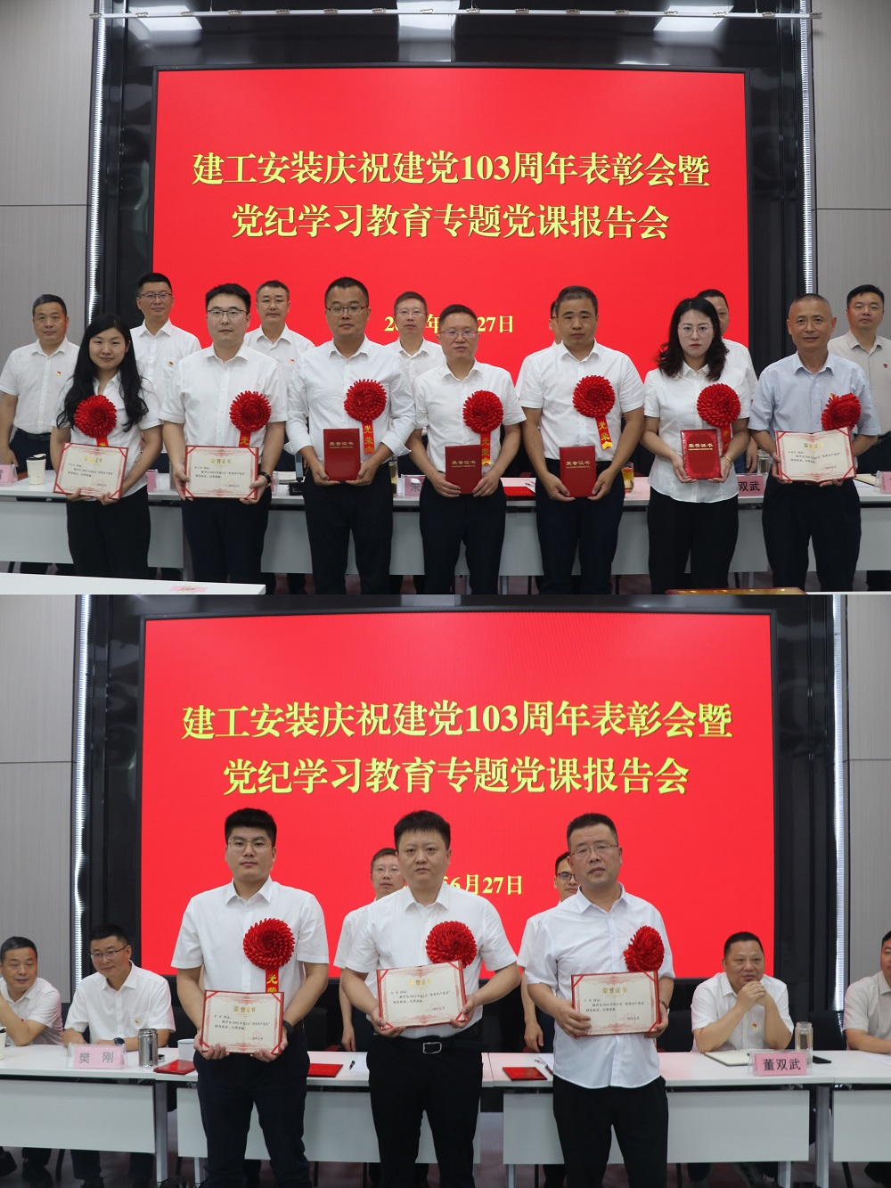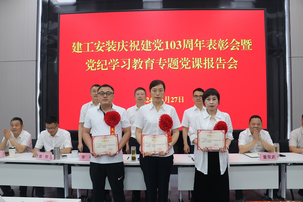 為慶祝中國共產黨(dang)成立103周(zhou)年,扎實推進黨(dang)紀學習教育(yu)走深走實。6月27日上午,建(jian)工安裝黨(dang)委(wei)(wei)召開(kai)慶祝建(jian)黨(dang)103周(zhou)年表彰會暨黨(dang)紀學習教育(yu)專題黨(dang)課報告(gao)會。公(gong)(gong)司(si)領導班(ban)子成員出席會議,會議由公(gong)(gong)司(si)黨(dang)委(wei)(wei)副(fu)書(shu)記(ji)、副(fu)總經理周(zhou)正平(ping)主(zhu)持(chi)。