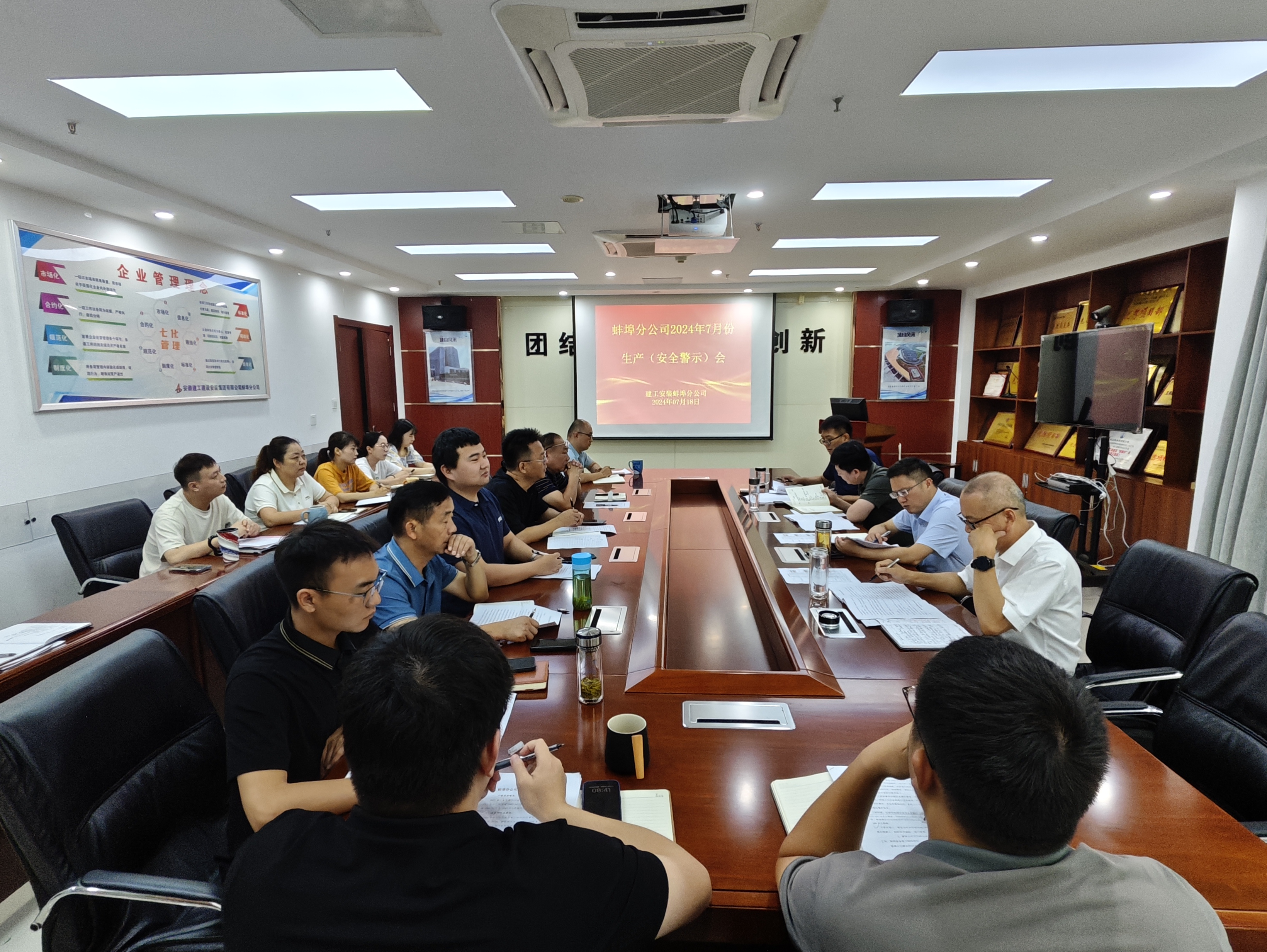 7月18日上(shang)午,蚌(bang)埠(bu)分(fen)(fen)公司(si)組(zu)織召(zhao)開7月份生產(安全警示)會(hui),分(fen)(fen)公司(si)領導(dao)班子、所屬(shu)各項目經理(li)、機(ji)關(guan)各部(bu)門(men)負責人及工程管理(li)部(bu)全體員工參加會(hui)議,會(hui)議由(you)副經理(li)張斌(bin)主持。