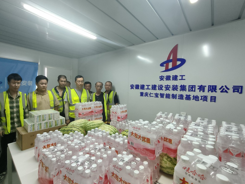 此(ci)次慰問先后(hou)來到臨湖智能制造(zao)產(chan)業園、花園大道、岳西中學、安徽建工鋼(gang)結構綠色智造(zao)(六安)、新(xin)橋(qiao)機(ji)場T2航站樓、新(xin)橋(qiao)智能制造(zao)產(chan)業園、重慶中冶等(deng)項目(mu)施工一(yi)線(xian),將綠豆、白糖、西瓜、礦泉水(shui)、藿香正(zheng)氣水(shui)等(deng)防暑(shu)(shu)降溫(wen)物資送到高溫(wen)下堅守(shou)崗位(wei)的(de)一(yi)線(xian)員(yuan)工手中。對(dui)他們的(de)辛(xin)勤付(fu)出表示感謝,并反復叮囑大家要注意防暑(shu)(shu)降溫(wen),合理安排施工和休息時間,確(que)保(bao)施工安全。活動(dong)中,項目(mu)安全員(yuan)還對(dui)現場工人進(jin)行了夏季防暑(shu)(shu)降溫(wen)、中暑(shu)(shu)急(ji)救知識宣(xuan)傳教育,有(you)效提(ti)高了大家的(de)自我(wo)保(bao)護意識和能力。