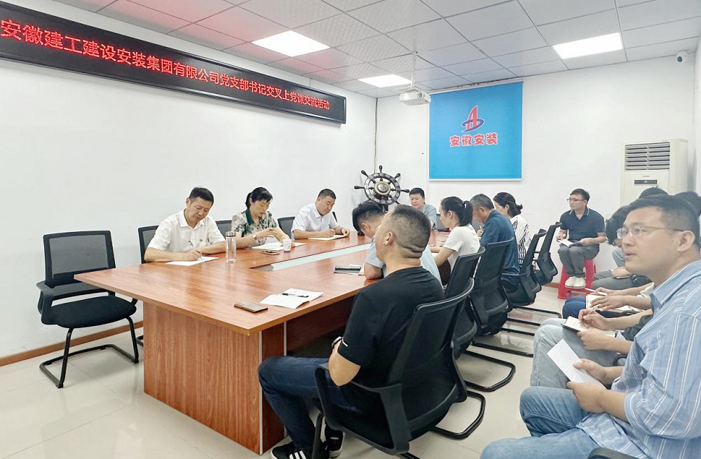 為推動(dong)(dong)黨(dang)(dang)紀(ji)學習教育走(zou)深走(zou)實,7月12日上(shang)午,建工安(an)裝蚌(bang)埠分(fen)(fen)公(gong)司黨(dang)(dang)支(zhi)部(bu)書記(ji)王偉赴滁州(zhou)分(fen)(fen)公(gong)司開展黨(dang)(dang)支(zhi)部(bu)書記(ji)交(jiao)叉上(shang)黨(dang)(dang)課交(jiao)流(liu)活動(dong)(dong)。滁州(zhou)分(fen)(fen)公(gong)司領導班子(zi)成員(yuan)、全體黨(dang)(dang)員(yuan)、項目經理等(deng)參加(jia)此次(ci)活動(dong)(dong)。