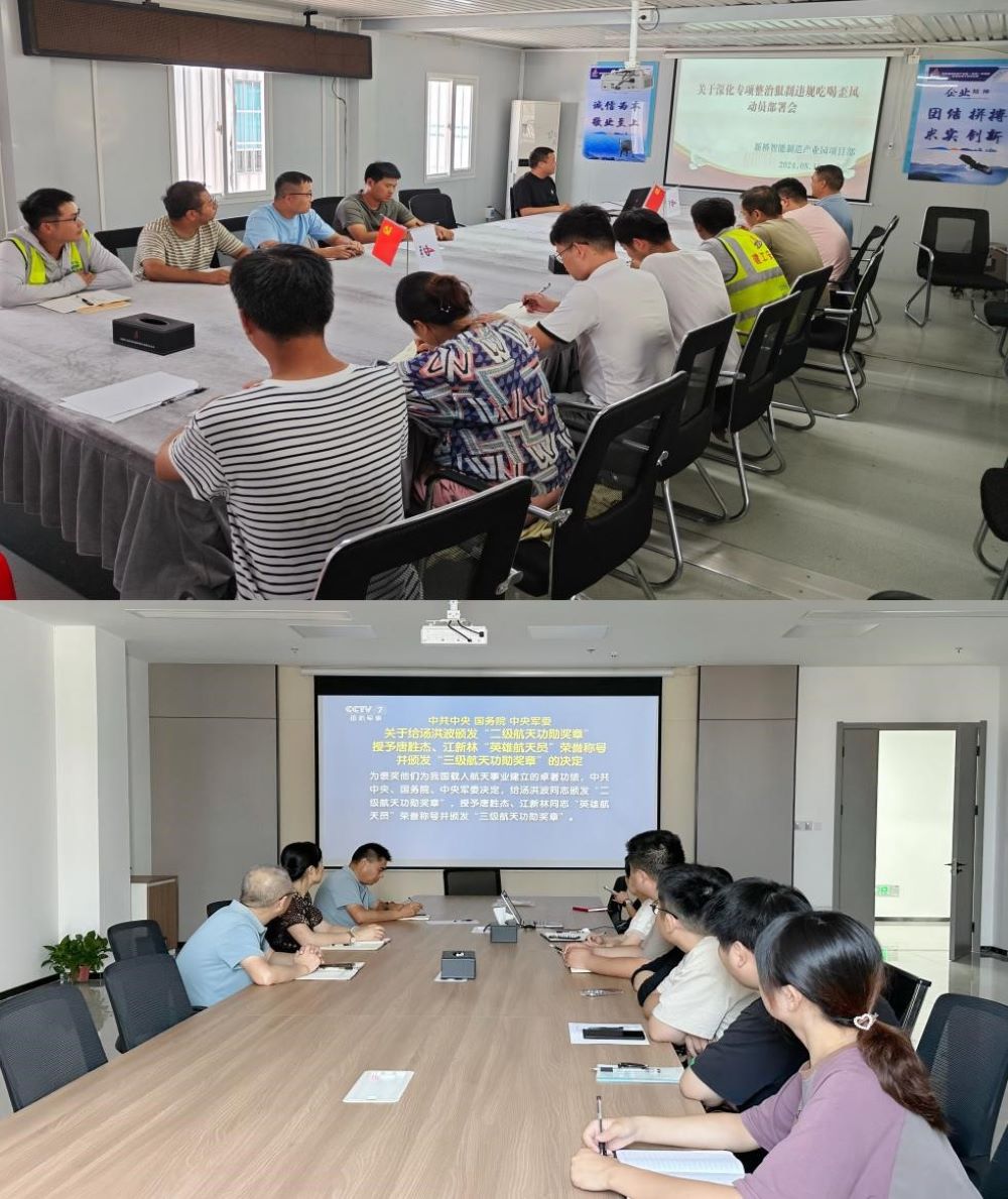 學習中(zhong),分(fen)公司機關和(he)各項(xiang)目部分(fen)別集中(zhong)觀看了中(zhong)共中(zhong)央、國務院、中(zhong)央軍(jun)委《關于給湯洪波頒(ban)發“二級航(hang)天功勛獎章” 授予(yu)唐勝杰(jie)、江新(xin)林“英雄航(hang)天員”榮譽(yu)稱號(hao)并頒(ban)發“三級航(hang)天功勛獎章”的決(jue)定》網絡(luo)視頻(pin)。