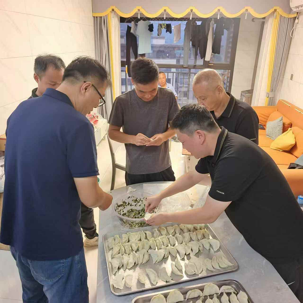 月朗星疏(shu),金秋(qiu)(qiu)送爽(shuang)。為慶(qing)祝即將(jiang)到來的中秋(qiu)(qiu)佳節,建工安裝(zhuang)蚌埠分(fen)公(gong)司廣東寧凡新材(cai)料有(you)限公(gong)司功能助劑(ji)和碳基(ji)高性能材(cai)料一(yi)期項目部組織項目管理人(ren)員開(kai)展慶(qing)中秋(qiu)(qiu)包餃子活動(dong)。分(fen)公(gong)司黨支(zhi)部書(shu)記、副經理王偉及分(fen)公(gong)司副經理張斌參加本次活動(dong)。