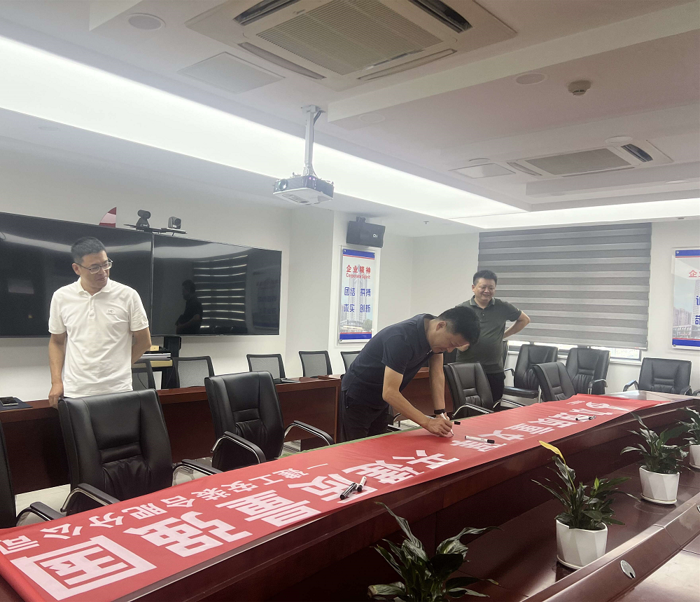 會后,舉行了主題橫幅簽名活動,大家莊重承諾嚴把質量關,持續提升項目質量水平。