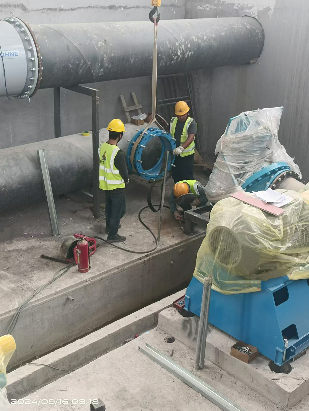 目前,該項目正在(zai)安(an)裝(zhuang)設備(bei)、管道(dao)和(he)(he)(he)閥(fa)門配(pei)件等,反沖(chong)洗泵(beng)房(fang)及鼓風機(ji)房(fang)內的(de)鼓風機(ji)和(he)(he)(he)水泵(beng)等設備(bei)已安(an)裝(zhuang)結束。管道(dao)和(he)(he)(he)閥(fa)門配(pei)件已安(an)裝(zhuang)完成75%;2#活性炭濾池的(de)管道(dao)和(he)(he)(he)閥(fa)門配(pei)件已安(an)裝(zhuang)完成70%;臭氧接觸池的(de)閥(fa)門井(jing)內管道(dao)和(he)(he)(he)閥(fa)門配(pei)件安(an)裝(zhuang)已安(an)裝(zhuang)完成60%。