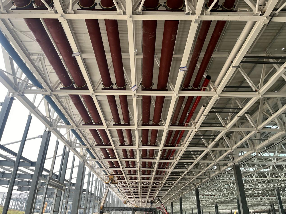 “優(you)方(fang)案”,項目部根(gen)據(ju)現場實際情(qing)況(kuang)提(ti)前優(you)化吊(diao)裝(zhuang)施工方(fang)案,加快(kuai)冷凍(dong)水(shui)管道(dao)安裝(zhuang)速度(du);并根(gen)據(ju)現場吊(diao)裝(zhuang)孔洞,轉變思路,定制(zhi)8米螺旋焊(han)管,大大加快(kuai)了吊(diao)裝(zhuang)施工進度(du)。