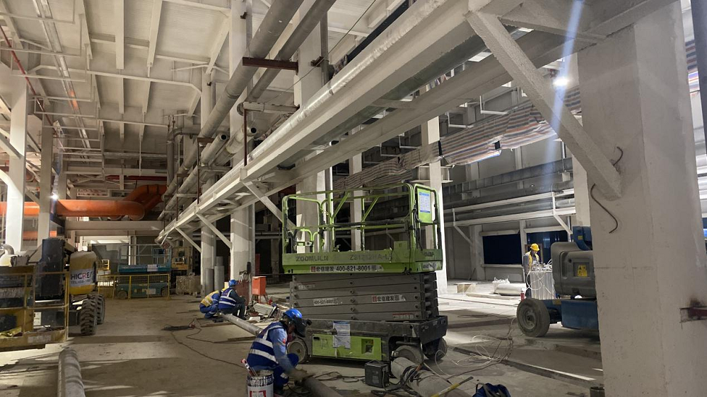 站房一(yi)(能源中心(xin))作(zuo)為整個廠區的“發(fa)動(dong)機(ji)(ji)”,建筑(zhu)面(mian)(mian)積雖僅有(you)11000平方米(mi),但單體機(ji)(ji)電安(an)裝造價約8000萬元,施(shi)工內(nei)容涵蓋空壓站、污水(shui)(shui)處理站、高效(xiao)制冷(leng)機(ji)(ji)房、消(xiao)防泵房及給水(shui)(shui)加壓站房等全廠幾(ji)乎所有(you)核(he)心(xin)“部件(jian)”。面(mian)(mian)對施(shi)工工藝復雜(za)、工期緊、標準高且施(shi)工過(guo)程中設(she)計(ji)變(bian)更頻繁、設(she)備供(gong)貨周(zhou)期長、資(zi)金不(bu)到位等多種不(bu)利因素,項目(mu)部積極想辦法克服困難,采取(qu)主(zhu)動(dong)對接各方資(zi)源,深化(hua)設(she)計(ji)確(que)認、督(du)促設(she)備批量排產(chan)(chan)(chan)、加快技術(shu)交(jiao)底完(wan)成、倒排施(shi)工計(ji)劃等一(yi)系(xi)列(lie)有(you)效(xiao)措施(shi),堅(jian)持“搶進度、抓(zhua)質量、保(bao)安(an)全”核(he)心(xin)思(si)想不(bu)動(dong)搖,加班(ban)加點(dian)推進項目(mu)建設(she)。截至目(mu)前,站房一(yi)(能源中心(xin))形象進度已完(wan)成55%以上,實現產(chan)(chan)(chan)能過(guo)半,為確(que)保(bao)關(guan)鍵(jian)合(he)同節點(dian)“2025年2月(yue)28日公用(yong)動(dong)力(li)系(xi)統調試(shi)完(wan)成,并具備各生(sheng)產(chan)(chan)(chan)條件(jian)”打下堅(jian)實基礎(chu)。