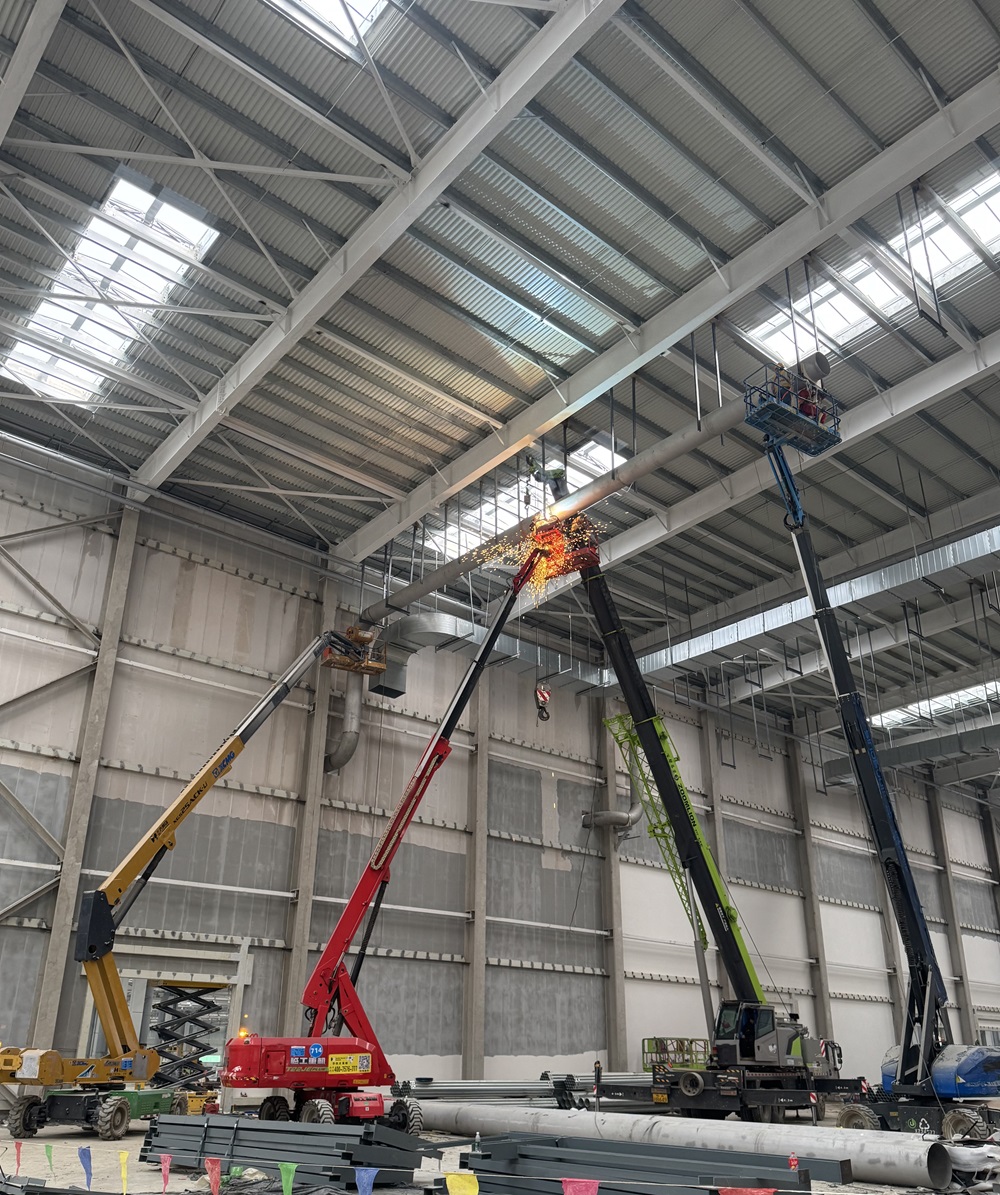 為確保施工有序高效(xiao)運行,項目部嚴格(ge)按照總體(ti)工期計劃(hua)部署施工任務,加(jia)大(da)人力、材料(liao)、機(ji)械投入(ru),組(zu)織多個(ge)工作面同時展開(kai)施工,確保工程(cheng)各節點(dian)進(jin)度有效(xiao)推(tui)進(jin)。截至目前,沖壓車間架空(kong)循環水(shui)主管(guan)(guan)(guan)道已安裝(zhuang)(zhuang)(zhuang)完成(cheng)進(jin)入(ru)介(jie)質(zhi)間。車間一閣(ge)(ge)樓空(kong)調(diao)水(shui)主管(guan)(guan)(guan)安裝(zhuang)(zhuang)(zhuang)完成(cheng)3600米,管(guan)(guan)(guan)道風機(ji)安裝(zhuang)(zhuang)(zhuang)65臺(tai),組(zu)空(kong)安裝(zhuang)(zhuang)(zhuang)4臺(tai),閣(ge)(ge)樓配電房移交3個(ge),配電柜安裝(zhuang)(zhuang)(zhuang)90臺(tai),橋(qiao)架安裝(zhuang)(zhuang)(zhuang)1500米,電線(xian)電纜(lan)安裝(zhuang)(zhuang)(zhuang)10000余米,各種燈具安裝(zhuang)(zhuang)(zhuang)200盞,消防報警設備安裝(zhuang)(zhuang)(zhuang)160套。