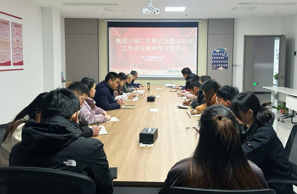 2月13日上午,建工安(an)裝(zhuang)滁州分(fen)(fen)公(gong)司分(fen)(fen)別在(zai)機(ji)關和項目部組織召開專題會(hui)(hui)議傳達學(xue)習建工控股(gu)三屆(jie)二次職代(dai)會(hui)(hui)暨2025年工作會(hui)(hui)議精神,分(fen)(fen)公(gong)司領(ling)導班子成員(yuan)、機(ji)關全體員(yuan)工和新橋智能制造產(chan)業園(yuan)項目員(yuan)工參加會(hui)(hui)議。