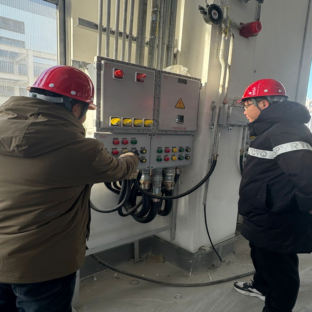 施工員正在檢查電箱(xiang)