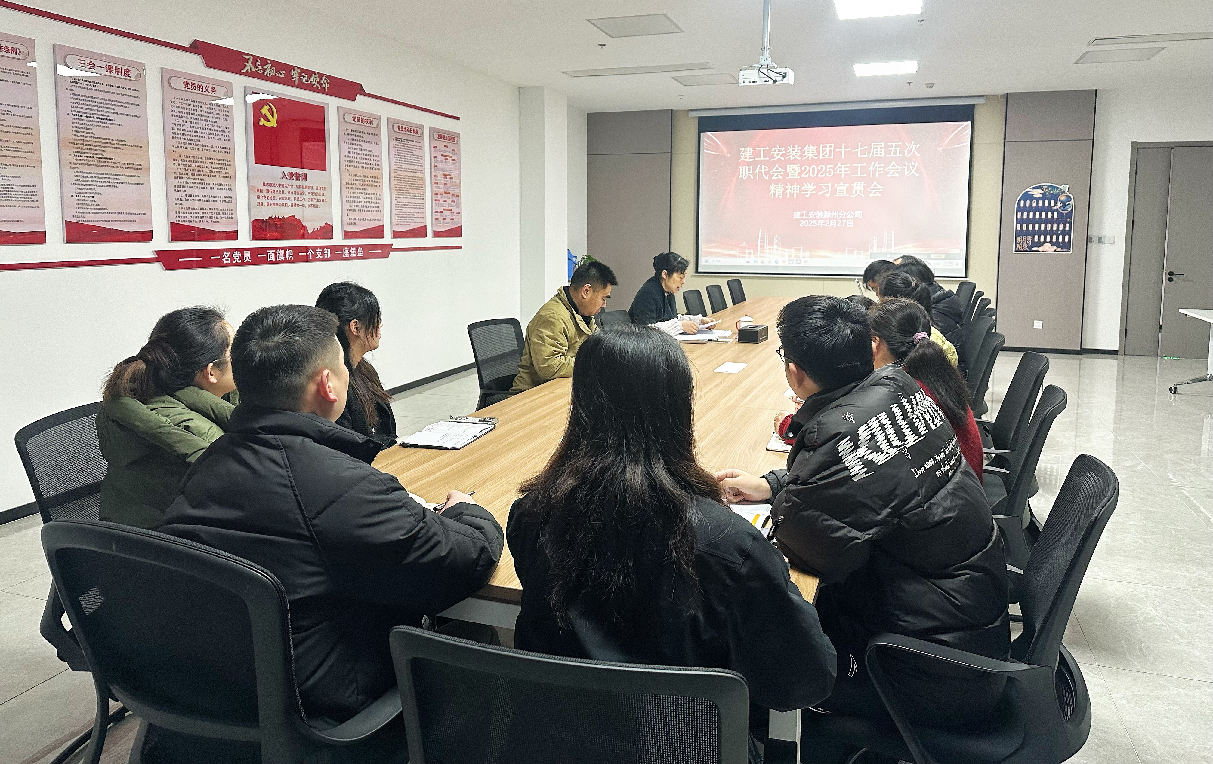 2月27日上午(wu),建工(gong)安裝滁州分公司分別(bie)在機關和項(xiang)目(mu)(mu)一(yi)線(xian)同步召開建工(gong)安裝十七屆五(wu)次職代會(hui)暨2025年工(gong)作會(hui)議(yi)精(jing)神專題學習(xi)宣貫會(hui)。分公司領導班子成員及部分職工(gong)代表、項(xiang)目(mu)(mu)經理作為宣貫人(ren)主(zhu)持會(hui)議(yi)。