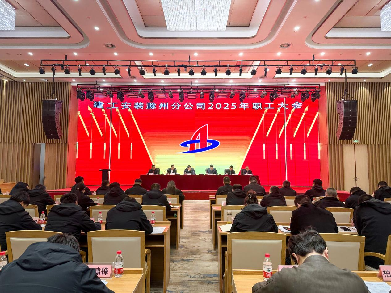 3月20日(ri)下午,建(jian)工(gong)(gong)安裝滁州分(fen)公(gong)(gong)司2025年度職工(gong)(gong)大會(hui)在滁順利召開,分(fen)公(gong)(gong)司全體(ti)員(yuan)工(gong)(gong)參加會(hui)議(yi),公(gong)(gong)司黨委(wei)委(wei)員(yuan)、副(fu)總經理徐華(hua)磊應邀出席會(hui)議(yi)并(bing)講話,會(hui)議(yi)由(you)分(fen)公(gong)(gong)司黨支部副(fu)書記、副(fu)經理程茂麗主持(chi)。