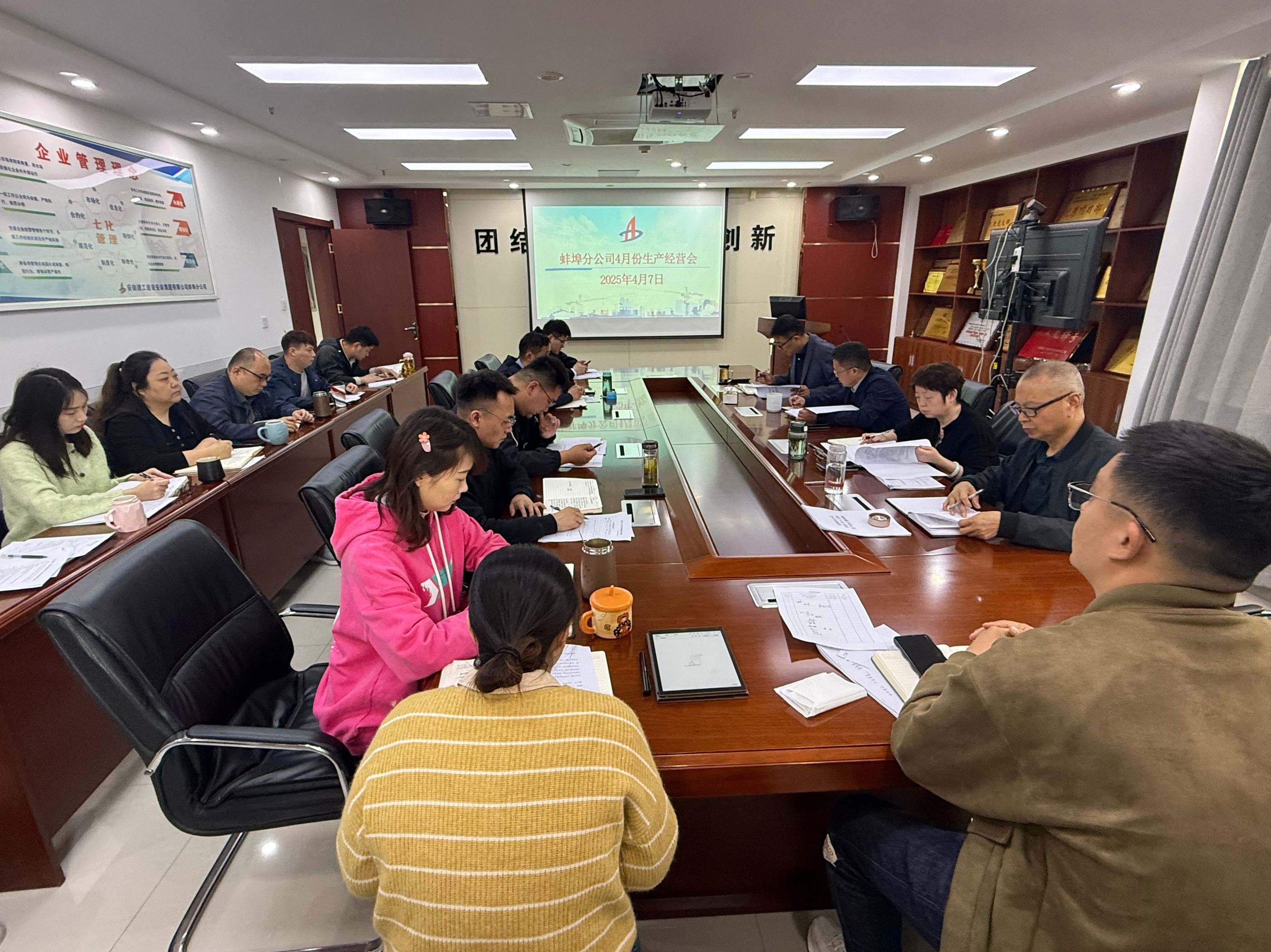 4月7日上(shang)午,蚌埠(bu)分公司組織召開4月份(fen)生產(chan)經(jing)營(ying)調(diao)度會,分公司領(ling)導班子成員、所(suo)屬各(ge)(ge)項目部(bu)、機(ji)關各(ge)(ge)部(bu)門負責(ze)人及工程(cheng)管理部(bu)全(quan)體員工參加會議。會議由分公司副經(jing)理張斌主(zhu)持。