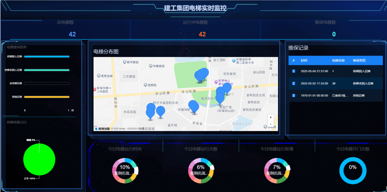新搭建(jian)的電(dian)(dian)梯(ti)(ti)管(guan)理模塊構建(jian)起高效的數(shu)(shu)(shu)據互通橋梁(liang),不(bu)僅能(neng)夠實(shi)時(shi)(shi)獲取已上(shang)線(xian)電(dian)(dian)梯(ti)(ti)編號、電(dian)(dian)梯(ti)(ti)設備名稱(cheng)等各項基礎(chu)數(shu)(shu)(shu)據,還能(neng)精準監(jian)測電(dian)(dian)梯(ti)(ti)運(yun)(yun)(yun)行時(shi)(shi)間、運(yun)(yun)(yun)行距(ju)離(li)、運(yun)(yun)(yun)行次數(shu)(shu)(shu)、開門次數(shu)(shu)(shu)等動(dong)態數(shu)(shu)(shu)據信息。該系(xi)統可(ke)全(quan)(quan)程(cheng)追蹤電(dian)(dian)梯(ti)(ti)召修記(ji)錄,詳細記(ji)錄召修維保上(shang)報時(shi)(shi)間、電(dian)(dian)梯(ti)(ti)維保人員到場時(shi)(shi)間,以及(ji)電(dian)(dian)梯(ti)(ti)故障處(chu)理過程(cheng)、因故障困人后的解救(jiu)時(shi)(shi)間等信息。這些數(shu)(shu)(shu)據的全(quan)(quan)面整合與(yu)實(shi)時(shi)(shi)呈現,能(neng)夠全(quan)(quan)方位、立體化掌握每臺電(dian)(dian)梯(ti)(ti)的運(yun)(yun)(yun)行狀態及(ji)故障率,增(zeng)強(qiang)了電(dian)(dian)梯(ti)(ti)運(yun)(yun)(yun)行的安全(quan)(quan)性和可(ke)靠性,有(you)效提升電(dian)(dian)梯(ti)(ti)維保效率。