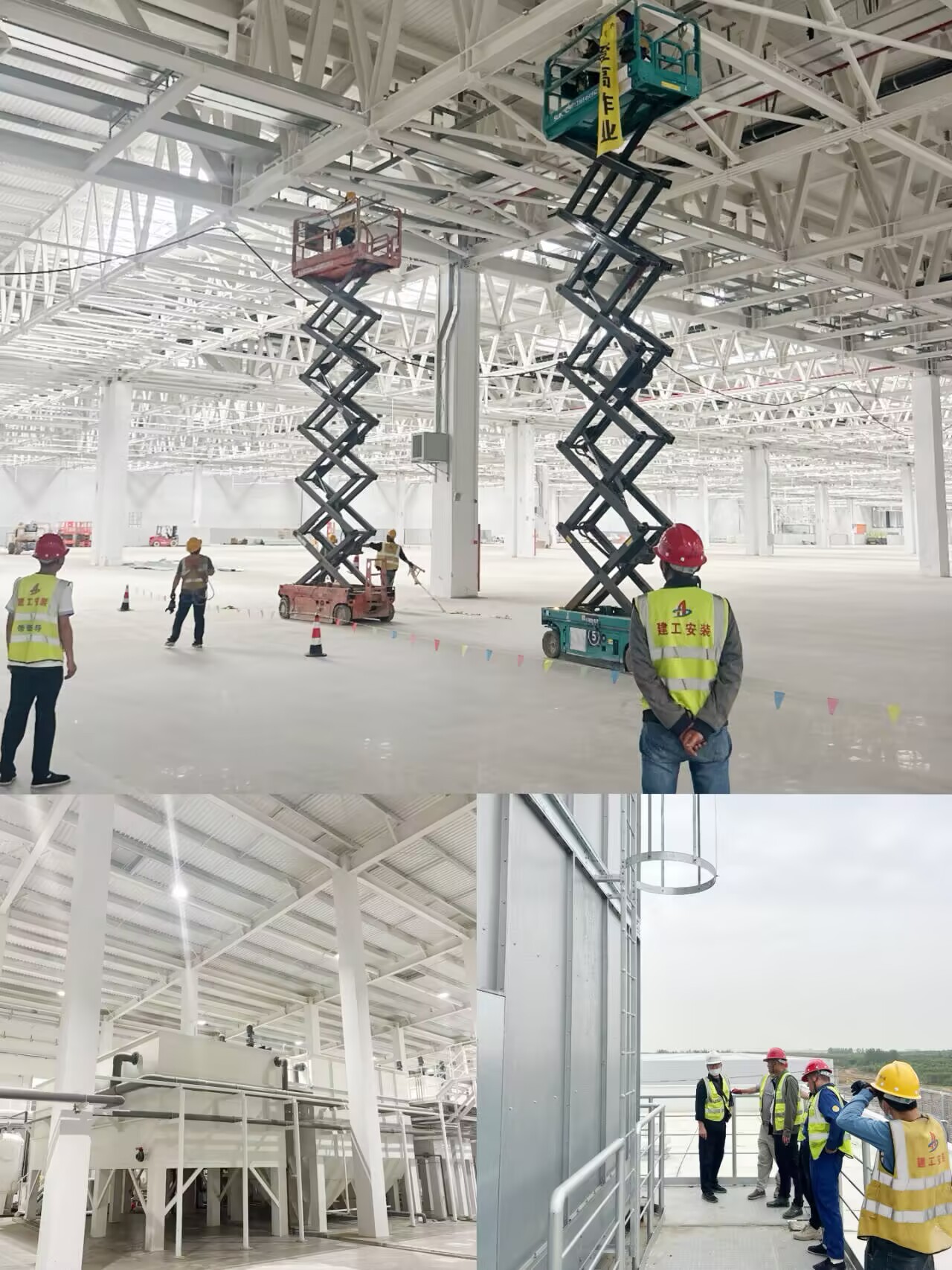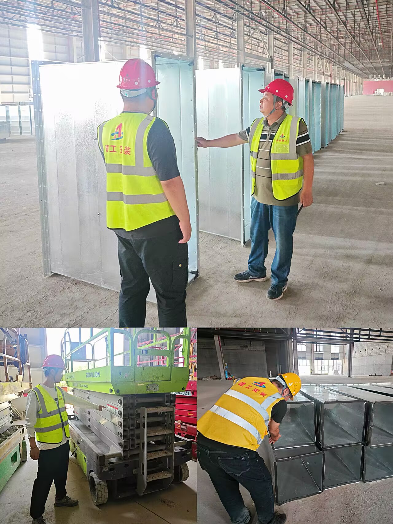 走進項目(mu)施工(gong)現場,銀灰(hui)色(se)的鋼結構廠房在陽光下熠熠生輝,長達百米的標準化(hua)車間整齊排列,工(gong)業美學(xue)與(yu)實用功能完美融(rong)合。現場管理人員正在監督(du)支吊架整改安裝、冷卻塔(ta)設備(bei)避(bi)雷(lei)針安裝交底等(deng),其中污水處理站安裝調試已完成,下一步(bu)全體人員將以高效率和(he)高標準推(tui)動項目(mu)順利通過竣工(gong)驗收。