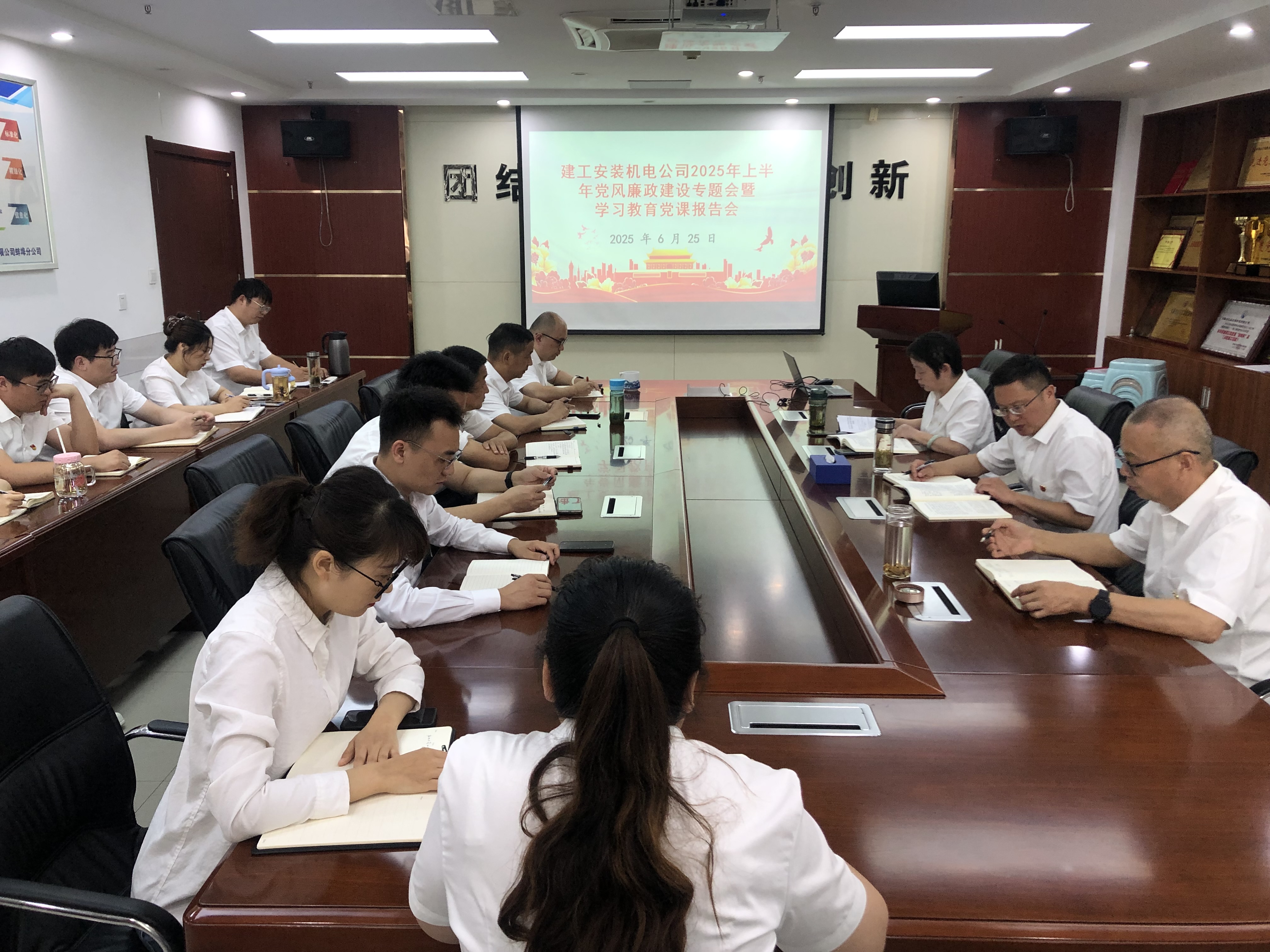 為(wei)慶祝中(zhong)國共產(chan)黨(dang)成立104周年,扎實推進深(shen)入貫徹中(zhong)央八項(xiang)規定精神學習教育走(zou)深(shen)走(zou)實,6月25日下午,建(jian)工安裝機(ji)電公司召開2025年度上(shang)半年黨(dang)風廉政建(jian)設專題會暨(ji)學習教育黨(dang)課(ke)報(bao)告會。會議(yi)由黨(dang)支部副(fu)書記許(xu)素(su)寒主持。